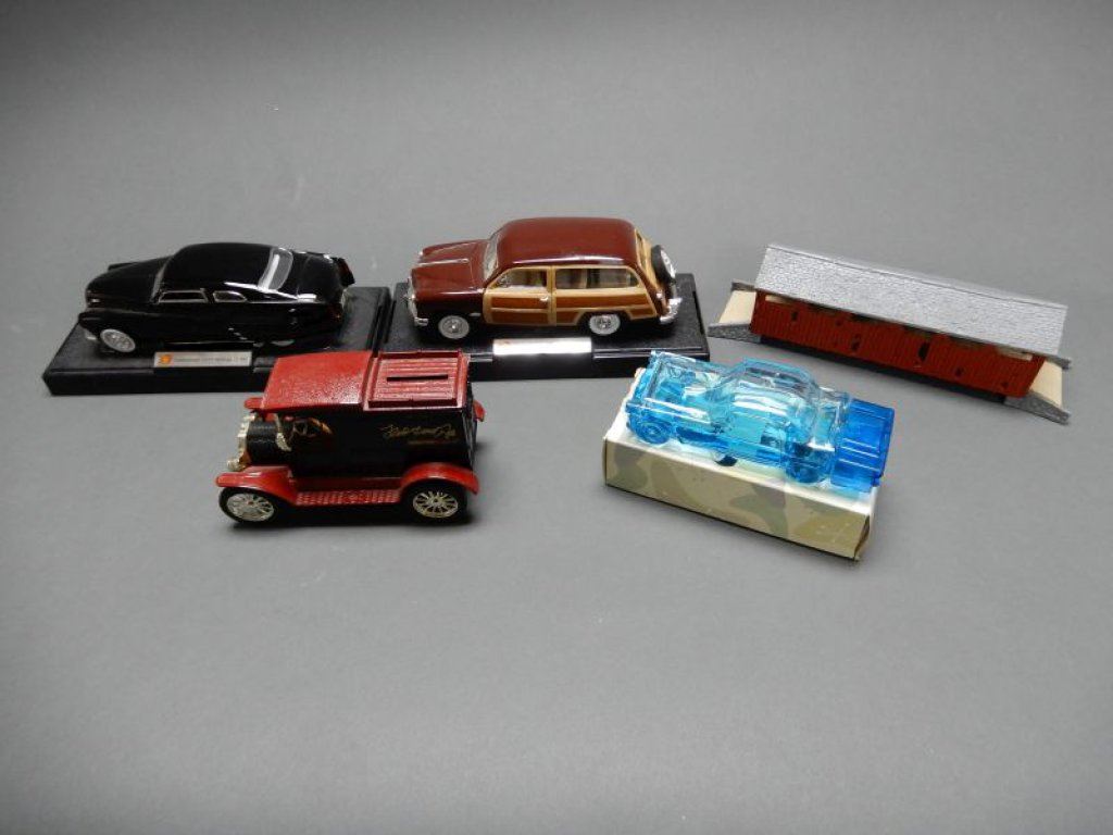 ERTL 1931 FORD MODEL T VAN COIN BANK/ KEY SIGNATURE 1949 FORD WOODY WAGON 1:24 SIGNATURE CUSTOMIZED 1949 MERCURY 1:28 2 AVON GLASS CARS HO SCALE COVERED BRIDGE