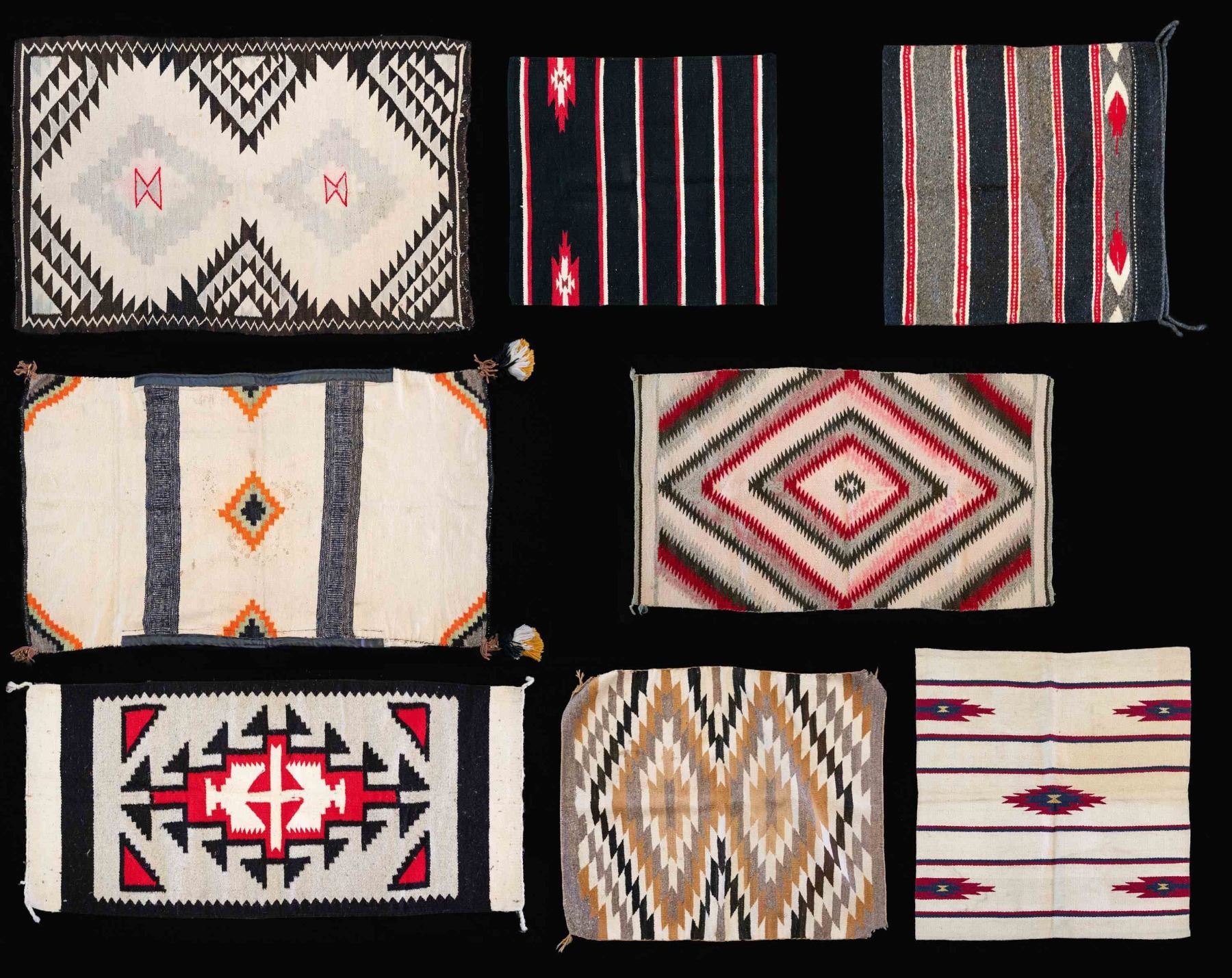 GROUPING OF 8 NAVAJO THEMED RUGS.