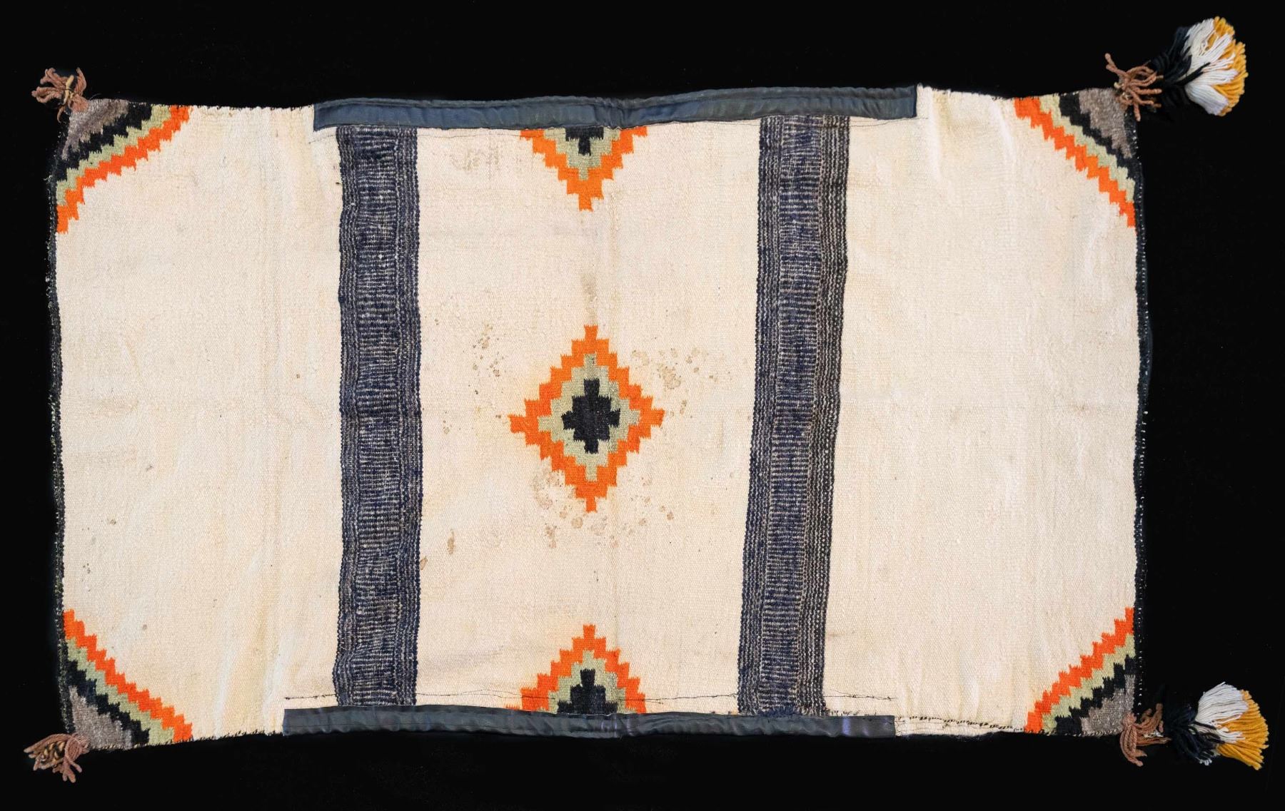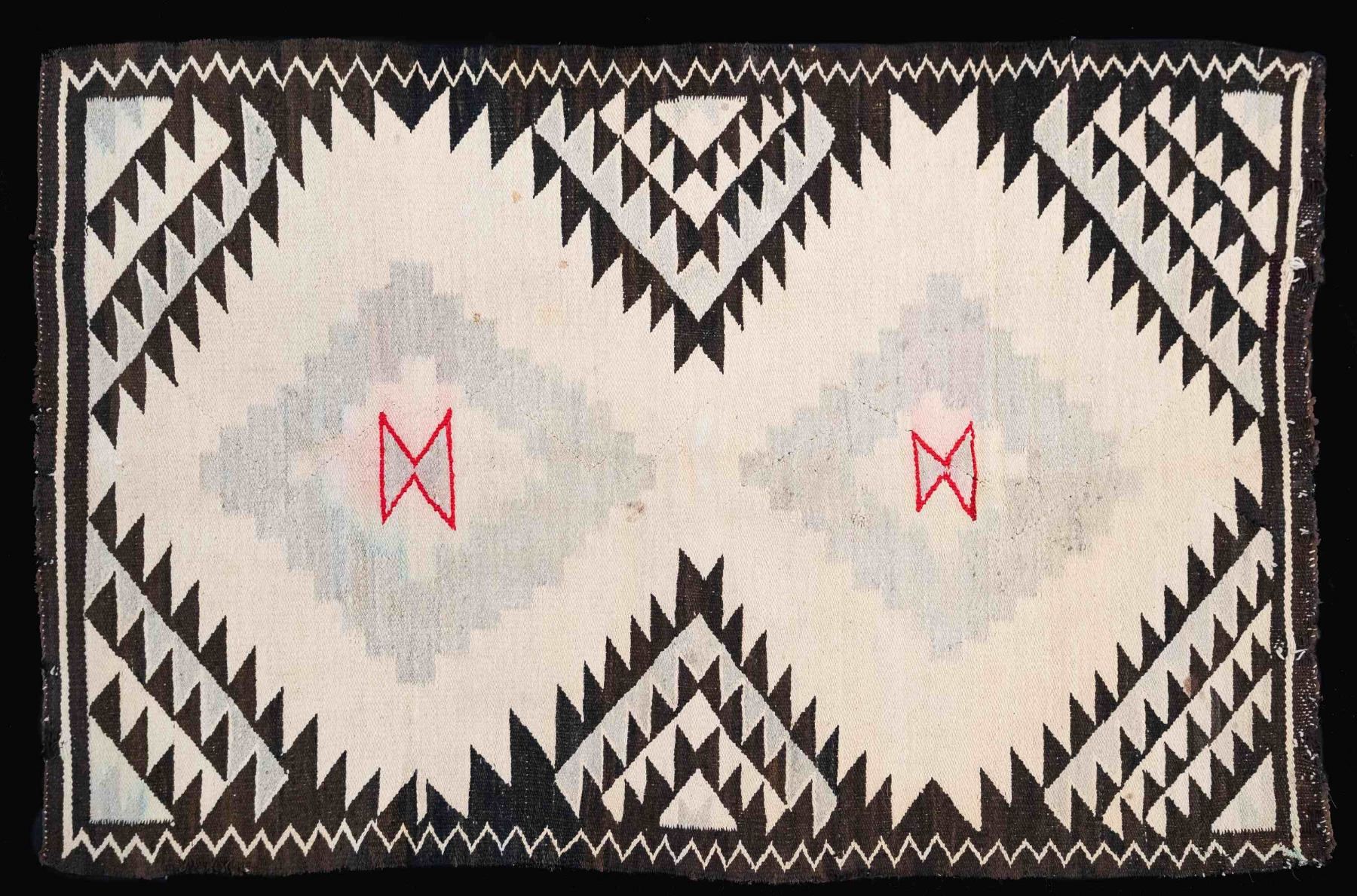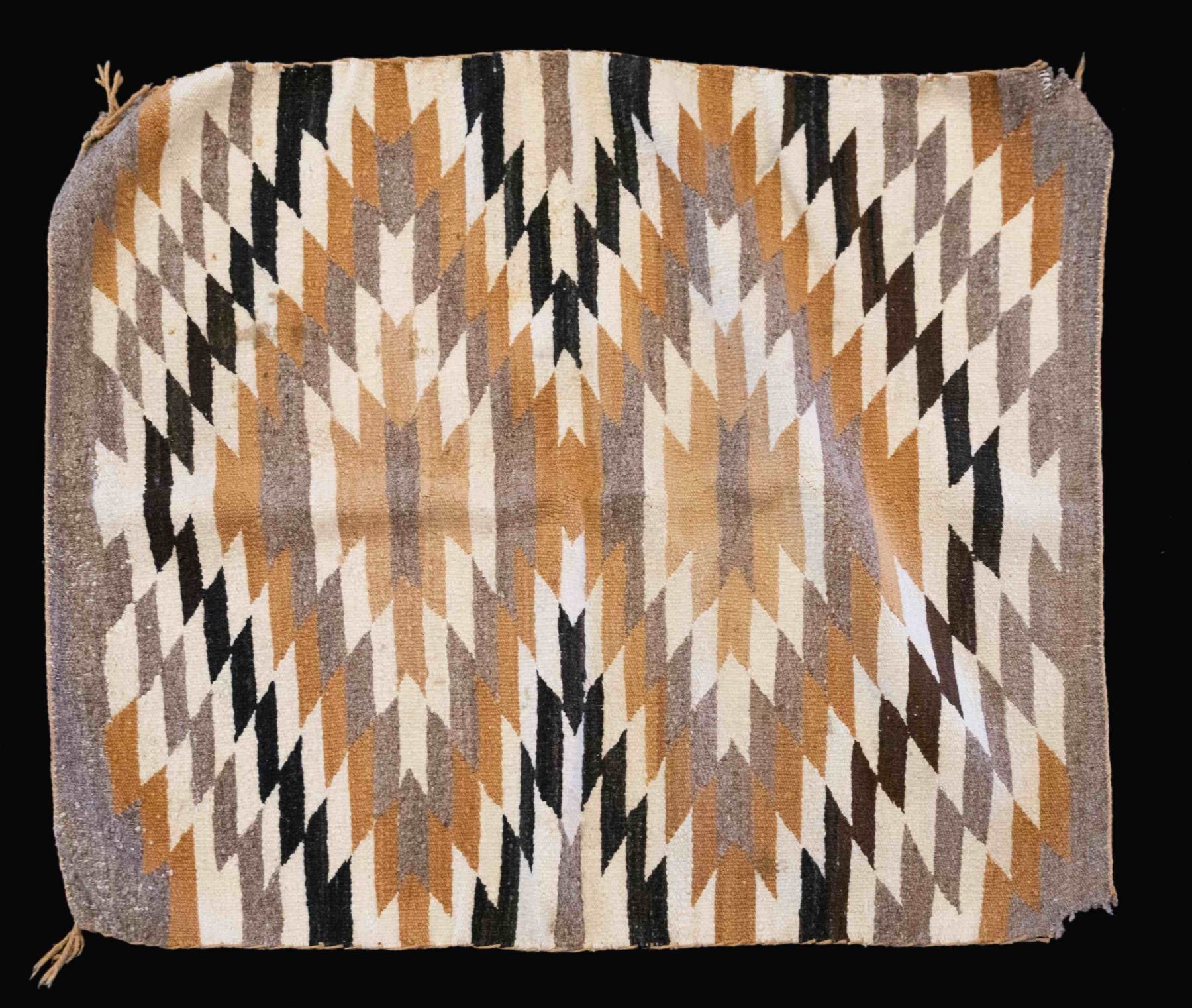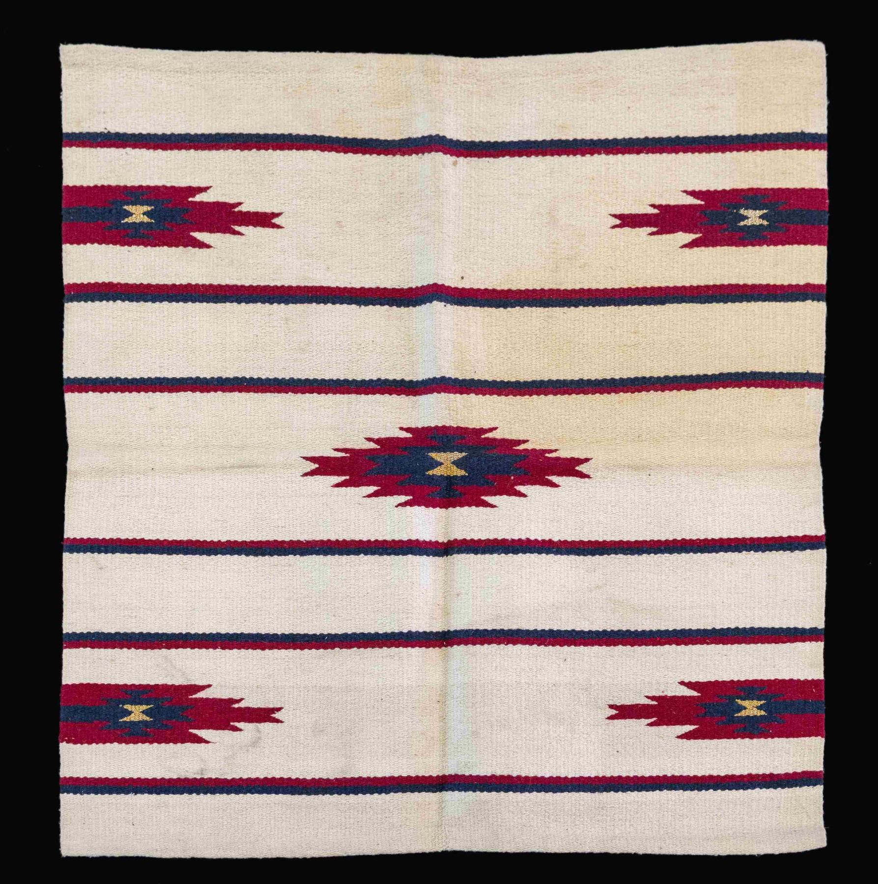 All 8 cotton & wool rugs are approx. 52" x 32" with different colors & patterns. These patterns appear to be shown in "NAVAJO RUGS" by Gilbert Maxwell book included with this lot. CONDITION: rugs in good, intact overall showing light wear, marks & light fraying. (02-25259/MD). $250-500.