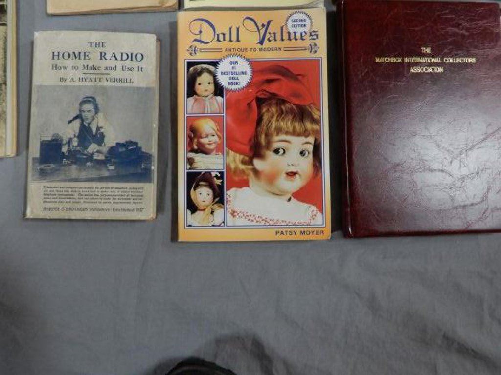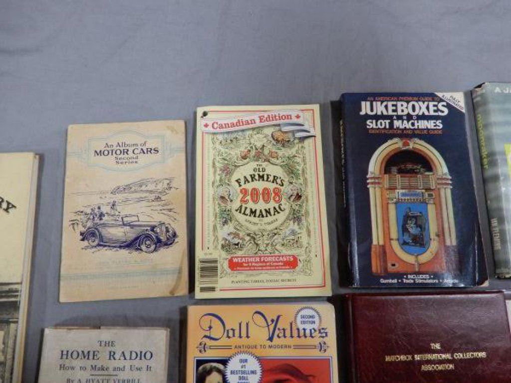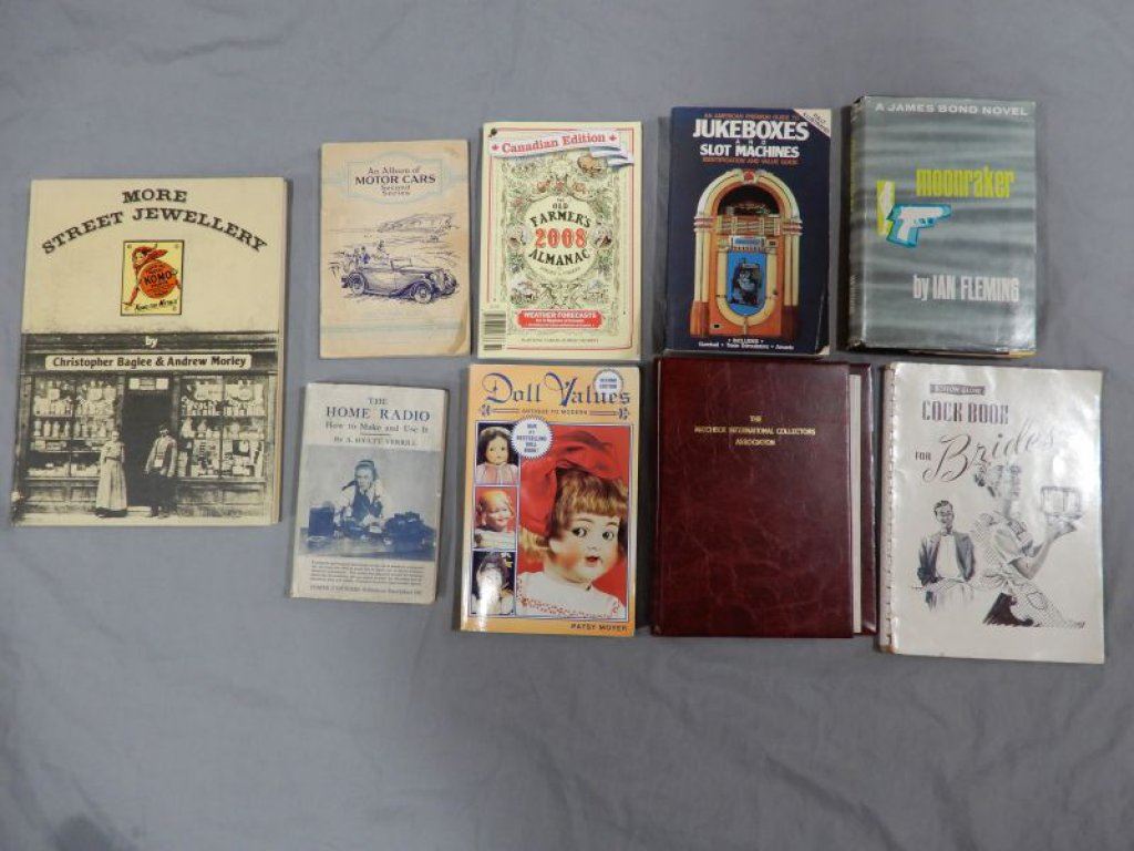 GROUPING OF 9 NOSTALGIA BOOKS DOLLS, JUKEBOX'S- HOME RADIOS- 2008 ALMANAC - STREET JEWELLERY- COOK BOOK FOR BRIDES LOCATION: UPPER BACKROOM