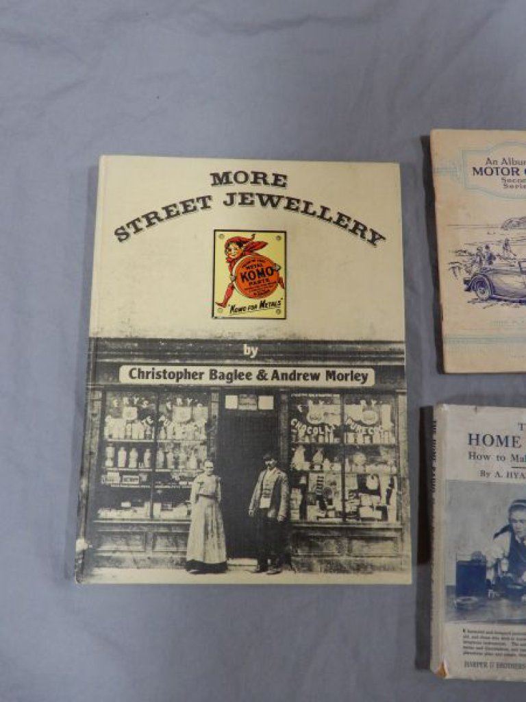 GROUPING OF 9 NOSTALGIA BOOKS DOLLS, JUKEBOX'S- HOME RADIOS- 2008 ALMANAC - STREET JEWELLERY- COOK
