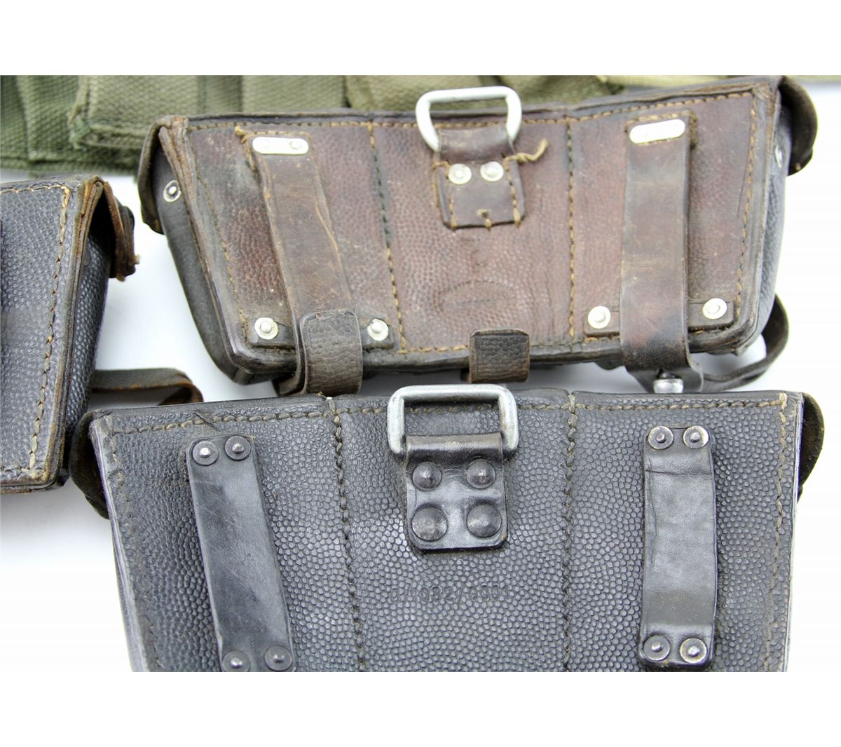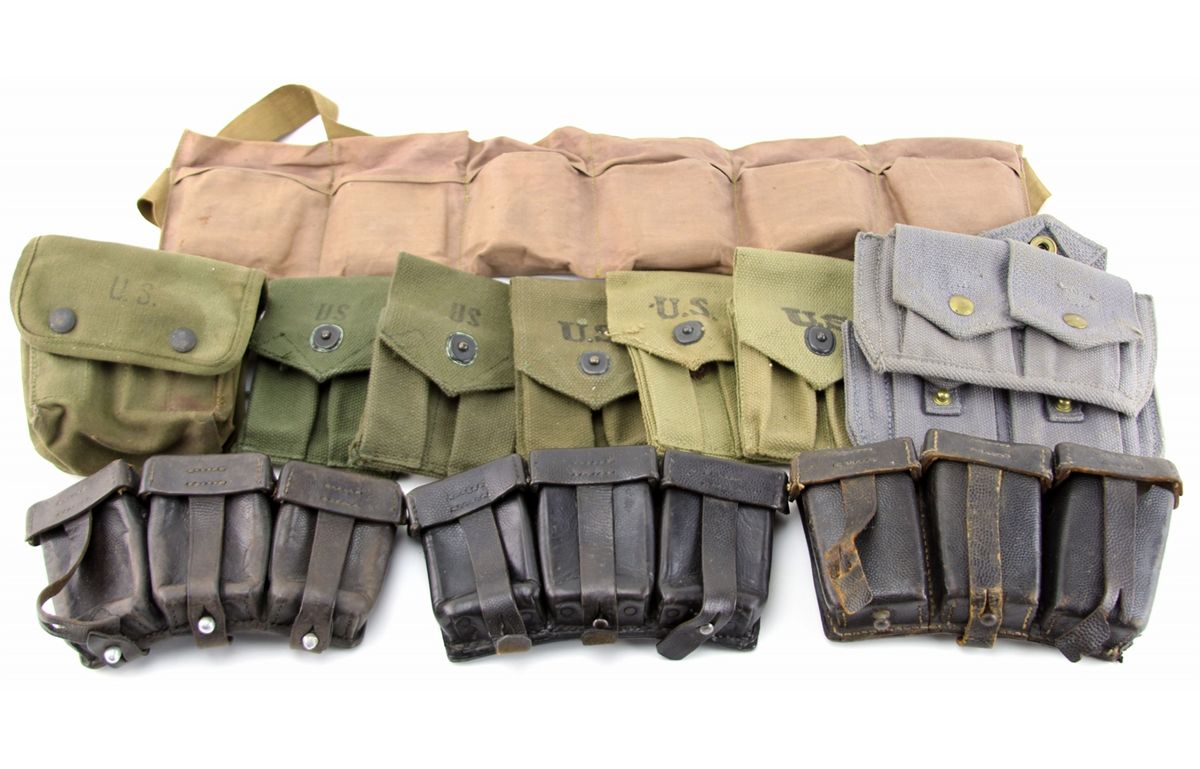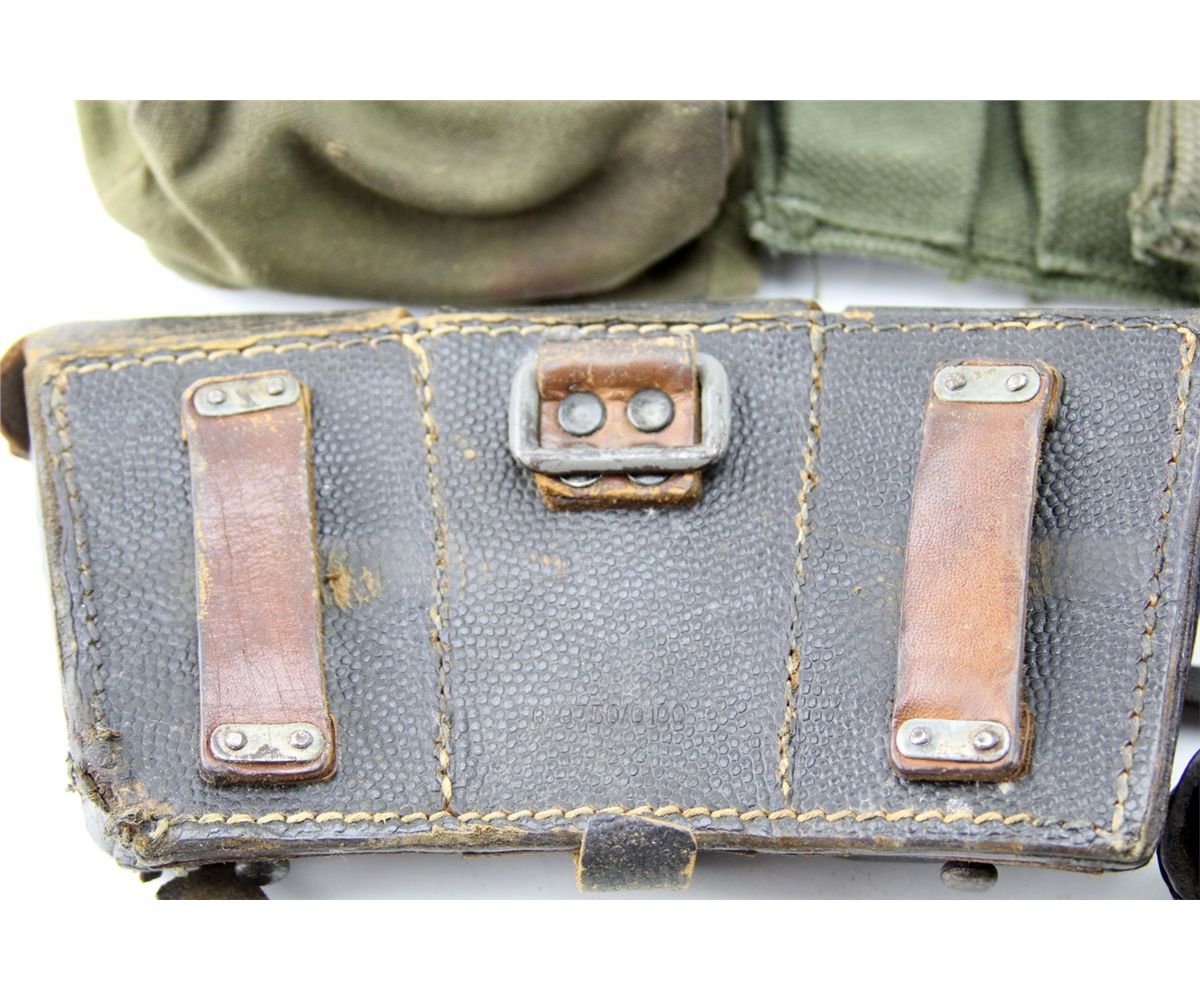 GROUPING OF CARTRIDGE & MAGAZINE CASES & GEAR Mixed grouping of various cartridge, magazine, and other ammunition pouches, boxes, and web gear. WWII and other eras. German, US, and other issue. Country: Mixed Condition: Various surplus condition