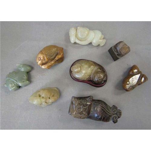 GROUPING OF CARVED CHINESE STATUES, animals, etc.