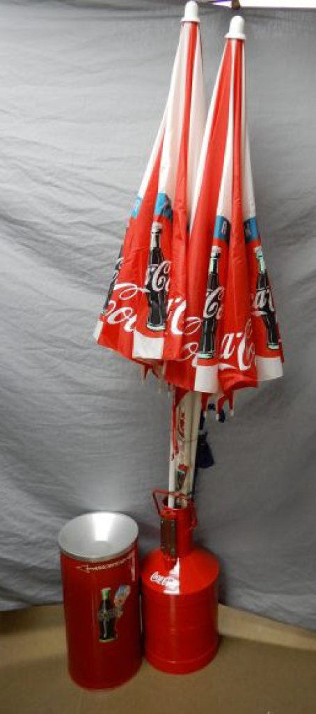 GROUPING OF RESTORED COCA- COLA COLLECTIBLES OIL DISPENSER- ASHTRAY - UMBRELLA'S LOCATION: SODA SHOP
