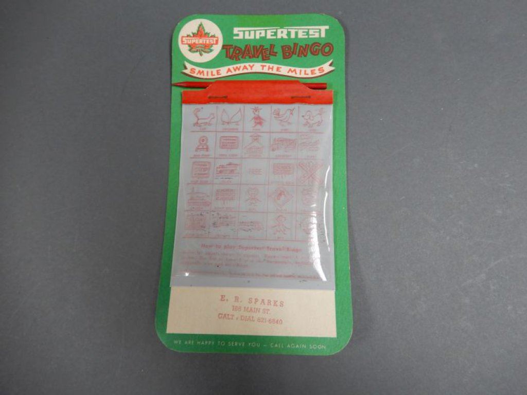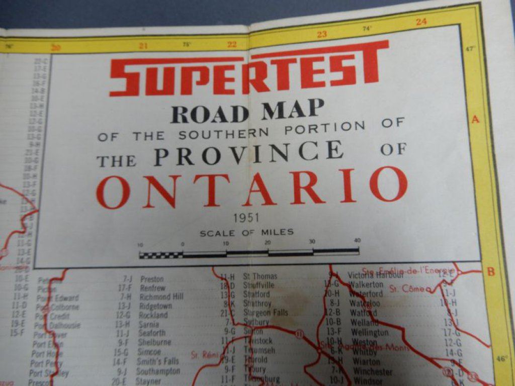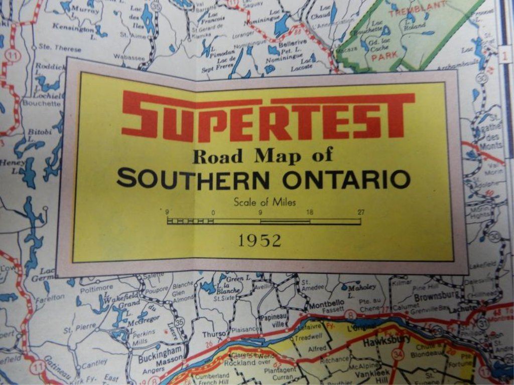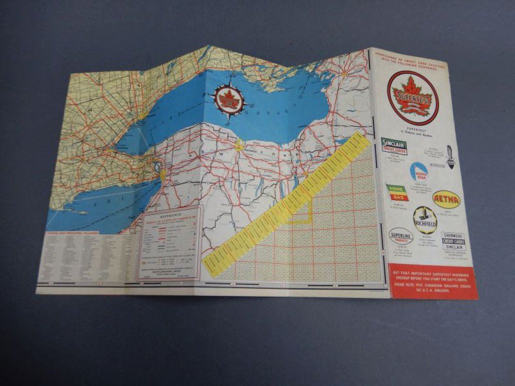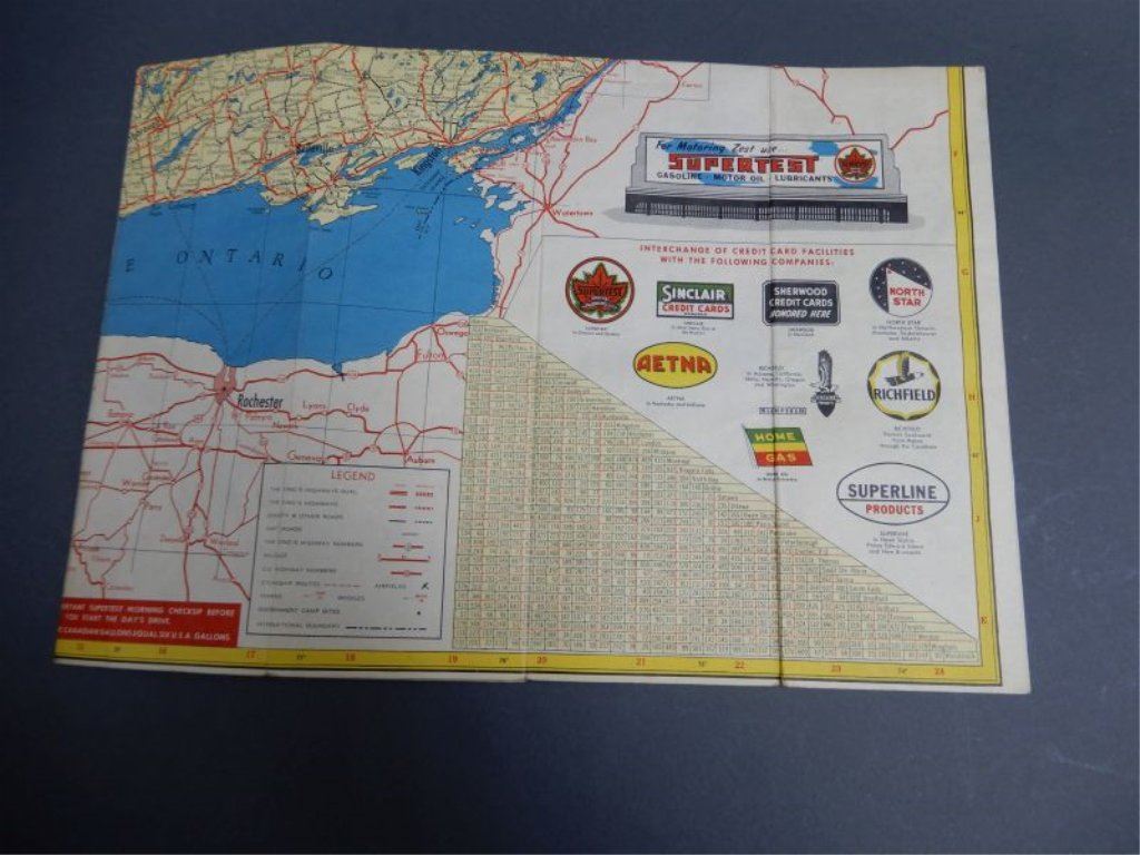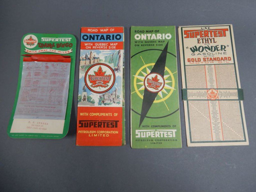 GROUPING OF SUPERTEST COLLECTIBLES 1951 & 1952 ONTARIO MAPS - TRAVEL BINGO- SPARKS- GALT, ON.- DIST-O-METER- VERY GOOD CONDITION LOCATION: SUPERTEST ROOM