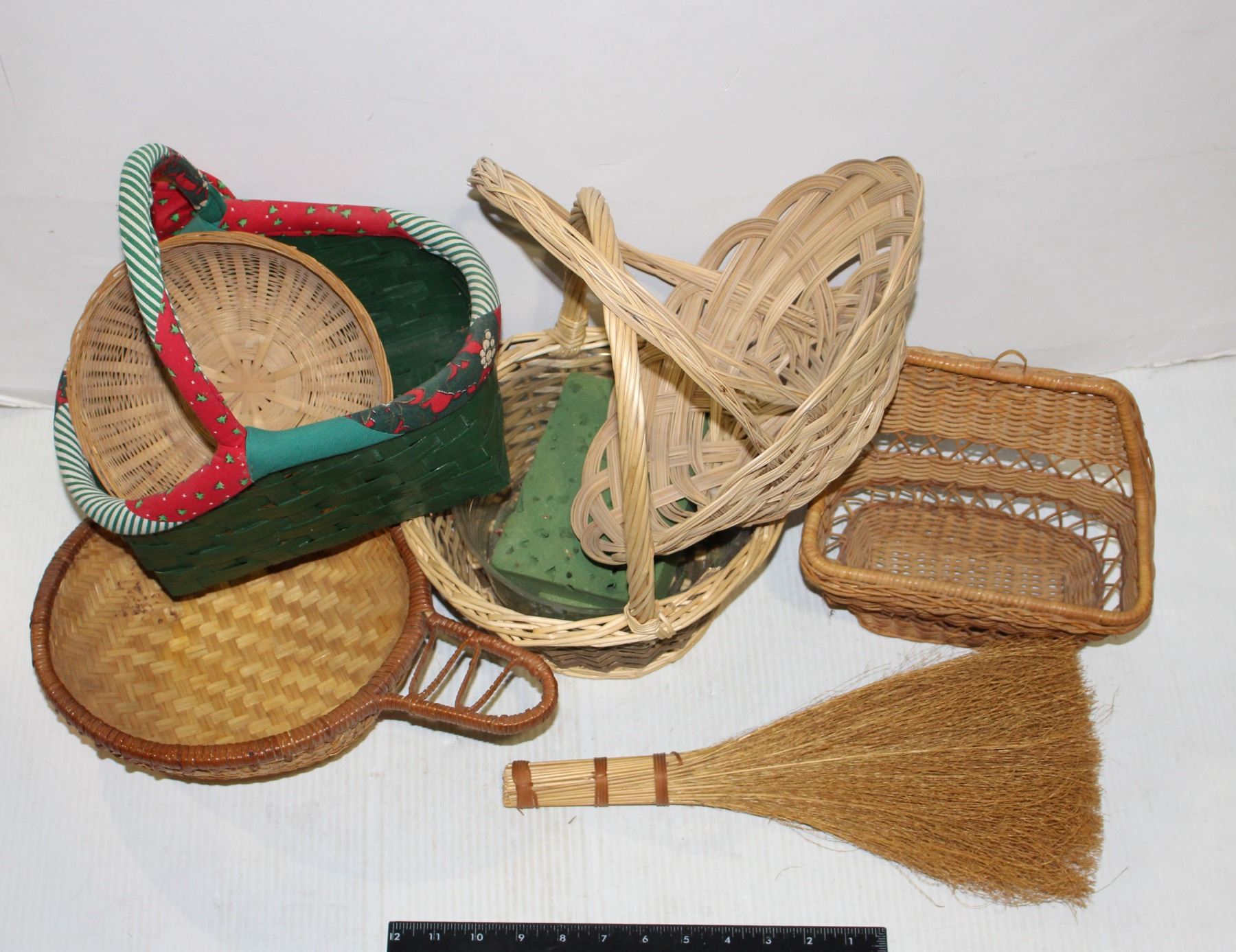 GROUPING OF WICKER BASKETS AND OTHER DECOR ETC.