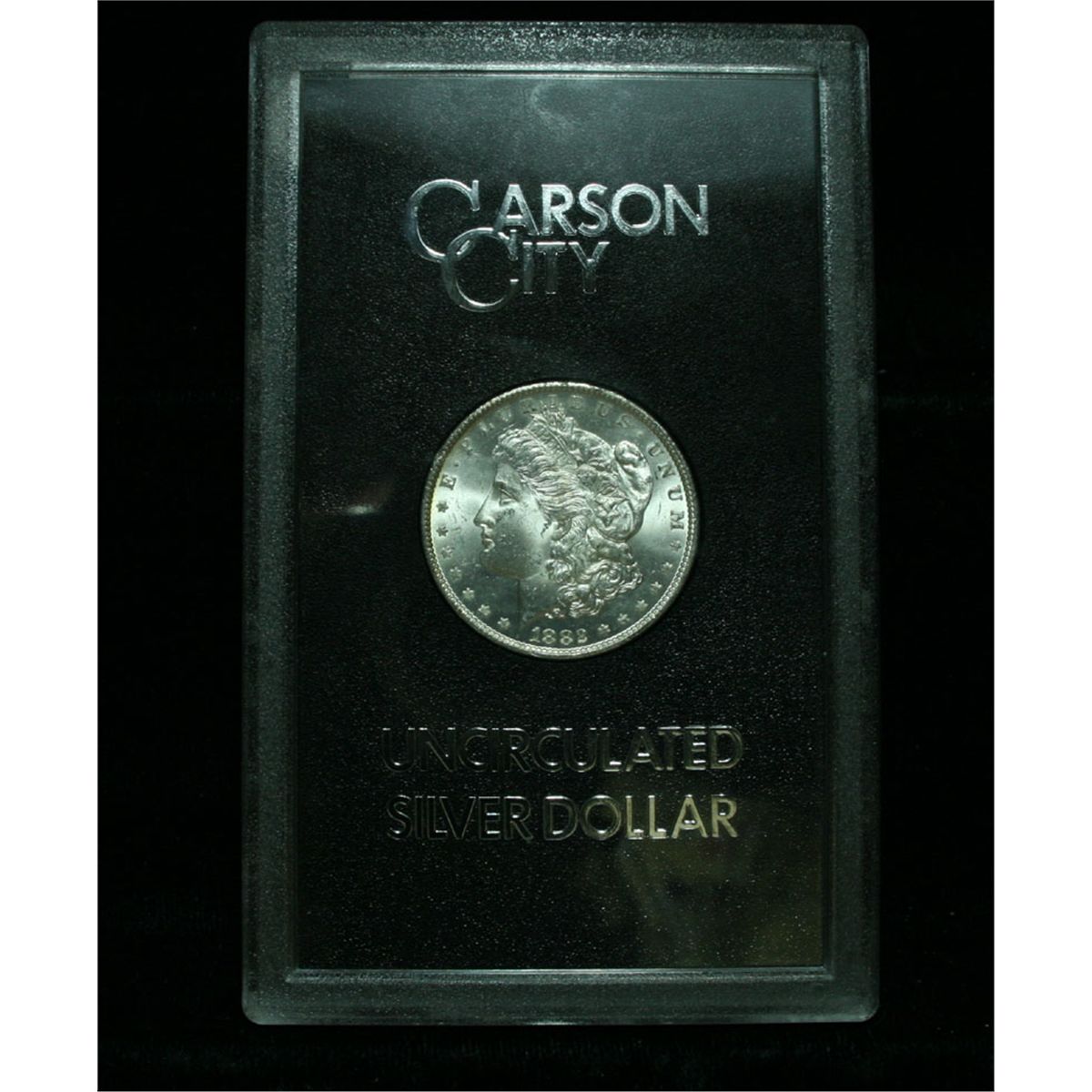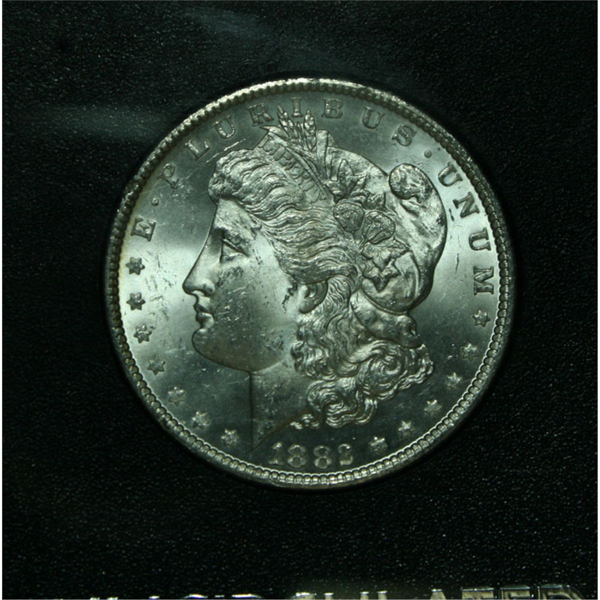 Very attractive example. It is also the VAM 3, with the Pinned Wing. After the US Government audited its vaults in the mid 70's they found a Hoard of Morgan Dollars in the basement vault in the federal reserve. Between 1973 and 1980 the Government Services Administration (GSA) Packaged these rare Morgan dollars and auctioned them off to the public. This example is the 1882-cc Carson City Morgan dollar in the GSA holder with the Original Box and COA. Estimated Value $325