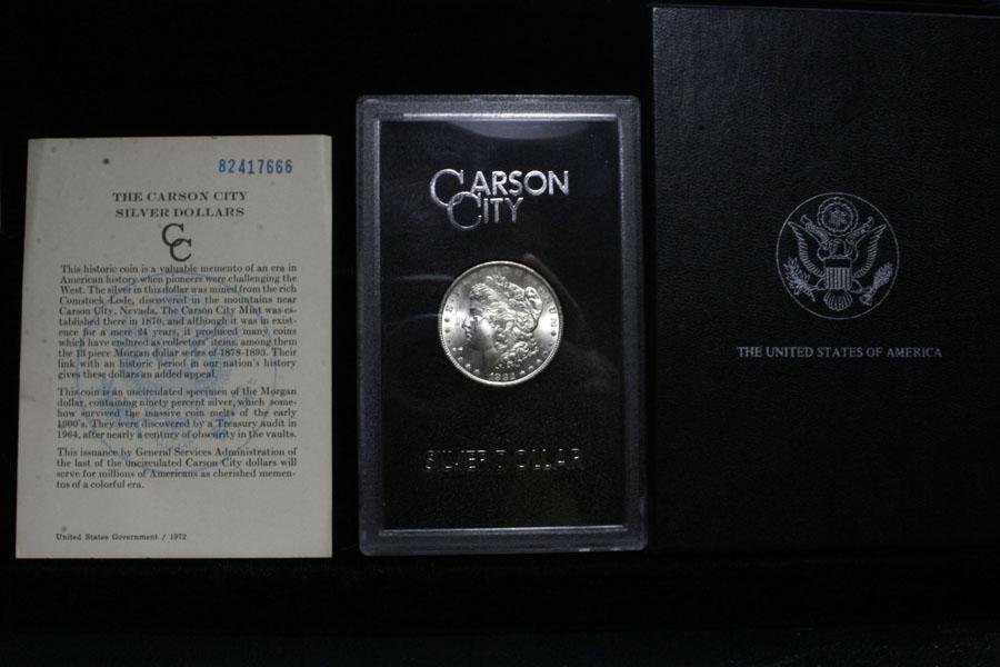 After the US Government audited its vaults in the mid 70's they found a Hoard of Morgan Dollars in the basement vault in the federal reserve. Between 1973 and 1980 the Government Services Administration (GSA) Packaged these rare Morgan dollars and auctioned them off to the public. This example is the 1882-cc Carson City Morgan dollar in the GSA holder with the Original Box and COA. Estimated Value $275