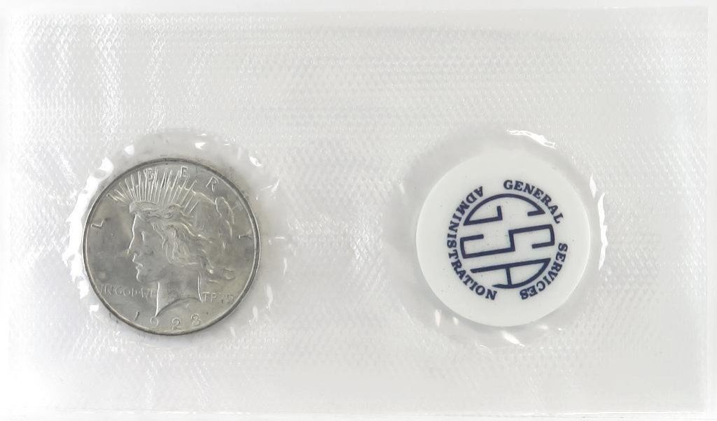 GSA Blue Envelope: 1923 Peace Dollar in GSA envelope with insert.