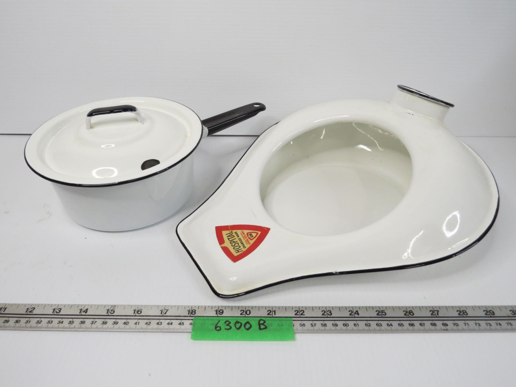 GSW Hospital Enameled Ware Bed Pan - Enamel Ware Pot w/Lid