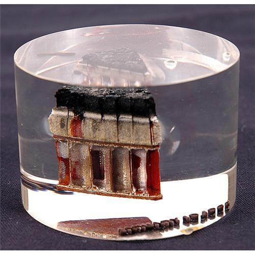 <Our item number 136978><B>GT-2, 1965, FLOWN Heatshield.</B> (.75x1.25") This flown piece of heatshield is mounted in a clear lucite cylinder (3x2") that is engraved: "GT-2 / January 19, 1965" on the bottom. Seldom available as this boiler plate flight was largely overlooked by collectors. Pristine condition. <BR>Estimated Value $350 - 500. <BR><BR>Our item number 136978<BR><IMAGES><P ALIGN="CENTER"><IMG SRC="http://www.goldbergcoins.net/liveauction/49jpegs/136978.jpg"> </P></IMAGES>