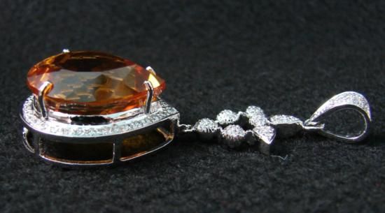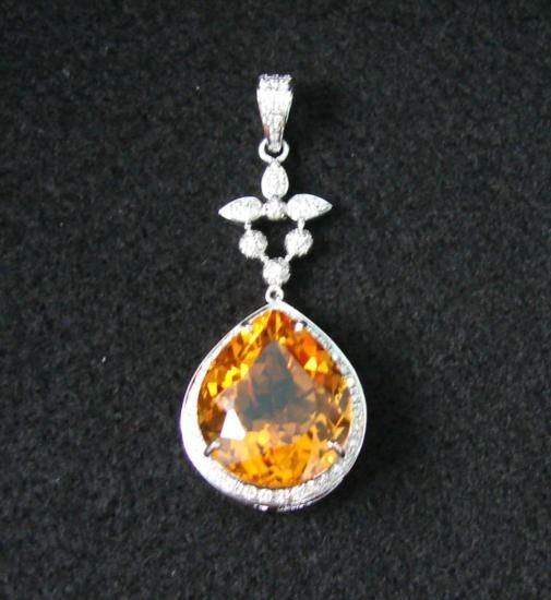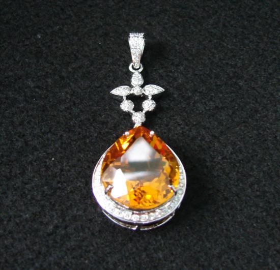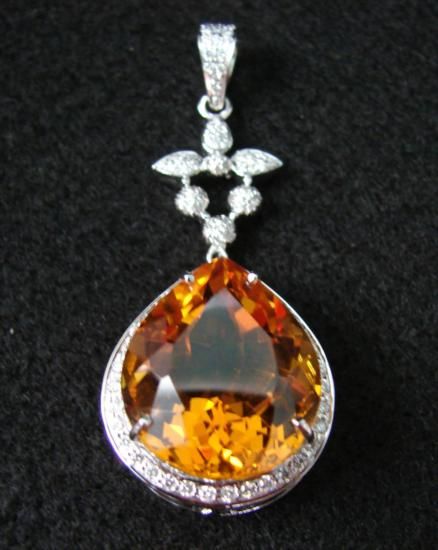 GT0041 Citrine & Diamond Pendant (103 pcs.80 carat round diamonds, 25.43 carat Citrine, 18k White Gold Setting 9.35 grams gold)