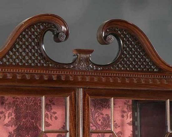 Chippendale mahogany bookcase cabinet with pierced broken arch pediment, thirteen pane mullion glass doors, carved apron and ball and claw feet, c.1890, 50in wide, 17in deep, 78in high