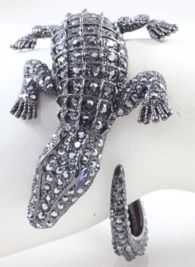 Impressive Black Crystal Crocodile Bangle Bracelet, measures approx 7 inches