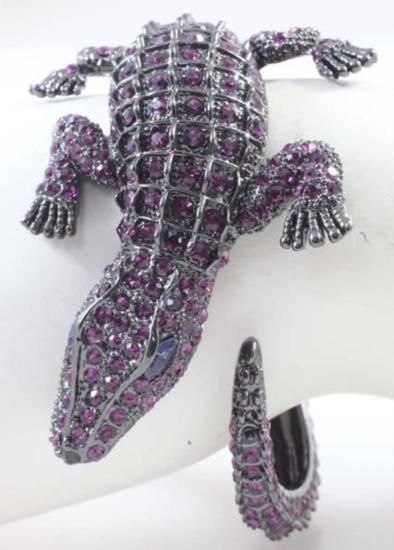 Impressive Purple Crystal Crocodile Bangle Bracelet, measures approx 7 inches