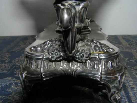 GT0611120038 ANTIQUE FRENCH SOLID SILVER INKWELL INK STAND, MEASURES 7 1/2in LONG, 3in WIDE AND 4in HIGH