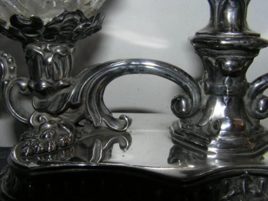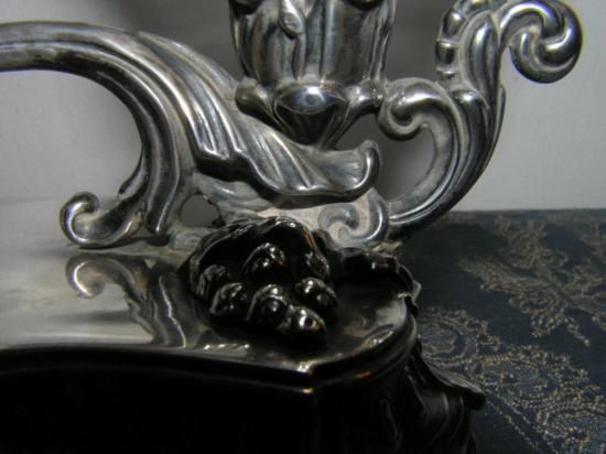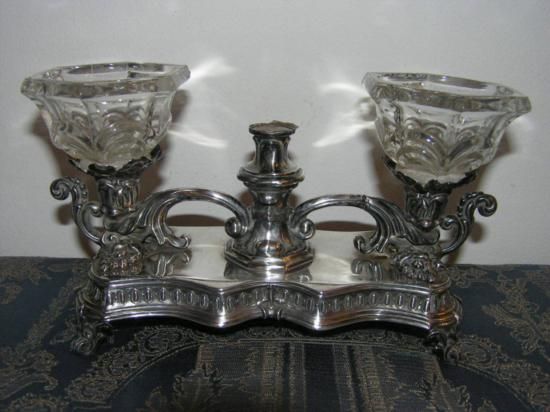 GT0611120038 ANTIQUE FRENCH SOLID SILVER INKWELL INK STAND, MEASURES 7 1/2in LONG, 3in WIDE AND 4in HIGH