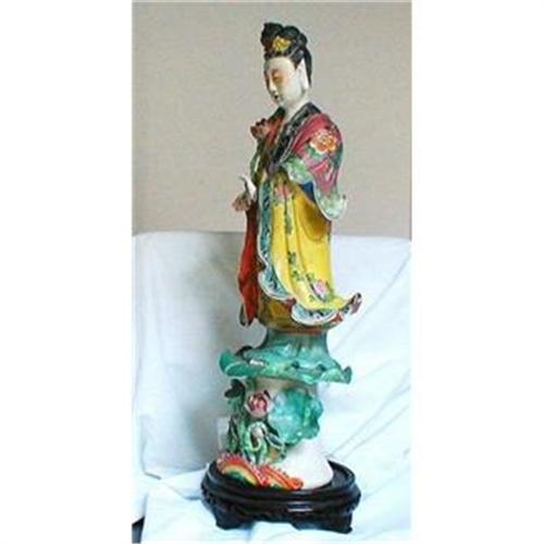 Magnificent large and Unique GUANYIN (Quanyin) probably Dehua, hand painted in stunning famille rose enamels. This is a spectacular and imposing figure of the Goddess of Mercy.