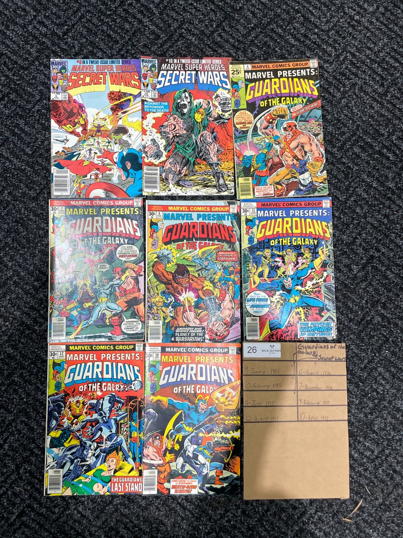9-Jan 1985, 6-Aug 1976, 10-Feb 1985, 7-Nov 1976, 11-Jun 1977, 9-Feb 1977, 12-Aug 1977, 10-Apr 1977