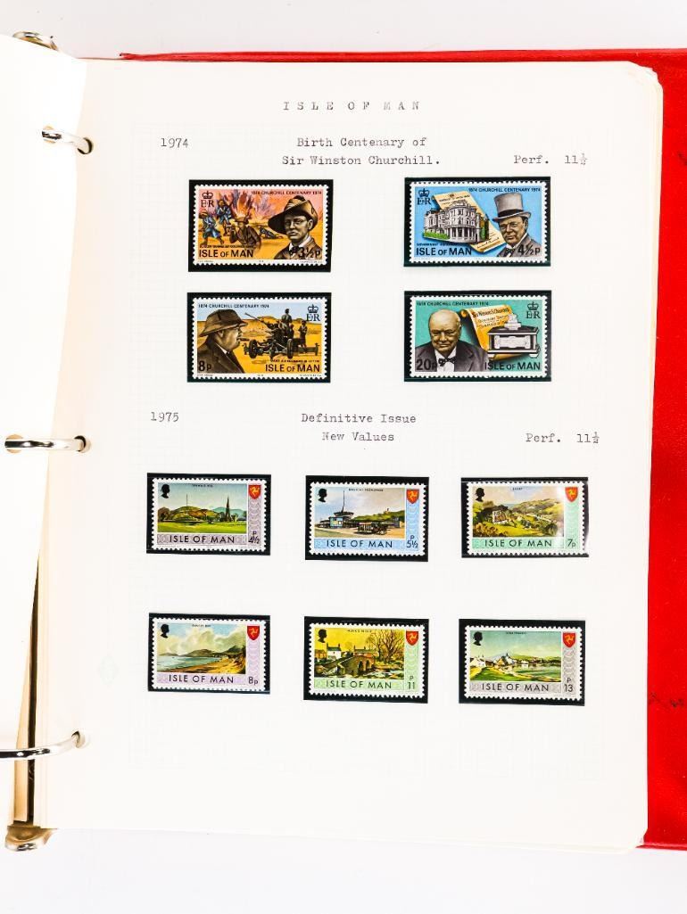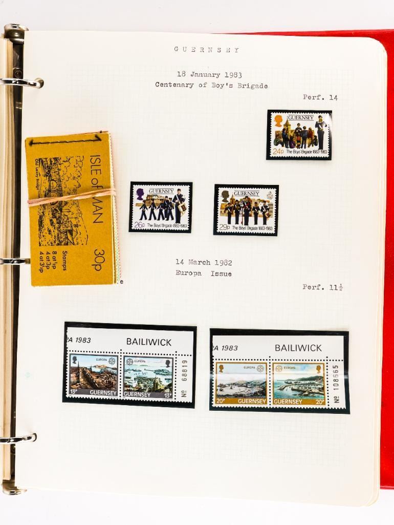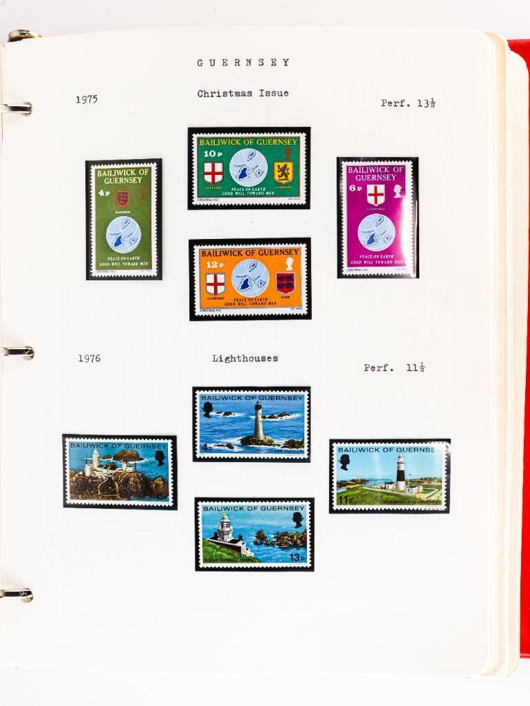 GUERNSEY -Jersey - Isle of Man - Stamp Collection - Cat: Value $956.00 Red Binder
