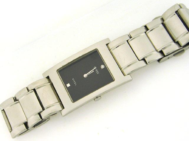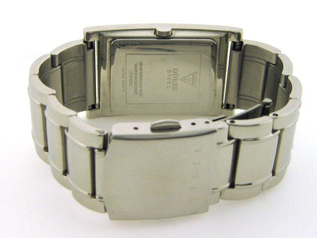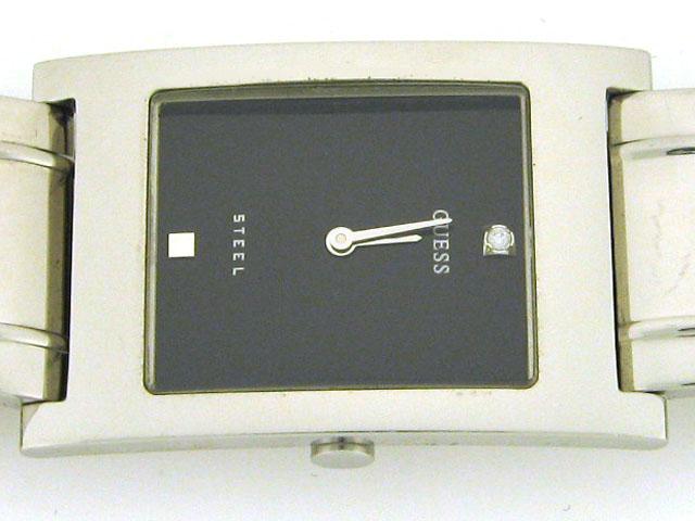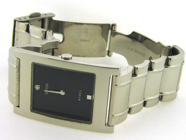 This is a GUESS STEEL DIAMOND DIAL SILVER WATCH with the following features: Japan Quartz Movement; Stainless Steel Case and Band with Push-Button Deployment Clasp; Mineral Crystal, Diamond Marker; Silver-tone hands and 1 diamond/1 silver-tone square mar