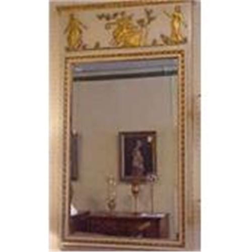 Superb paint decorated Trumeau Mirror with gilded figures and elements.