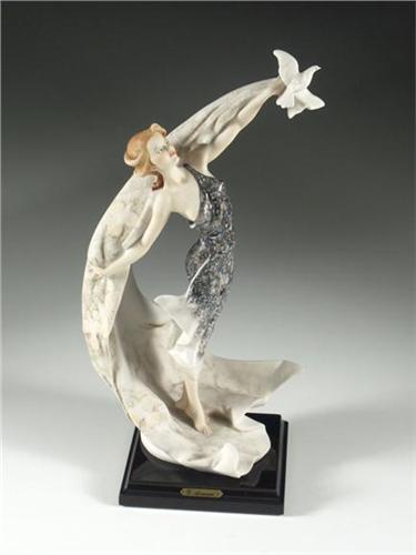 ARMANI SCULPTURE: A Guiseppe Armani for Capodimonte porcelain and resin figurine entitled, ''Ascent'', a female figure with a long scarf and dove in a soaring motion, #0866, dated 1991, Florence, Italy, 14'', in original box, no damage noted.