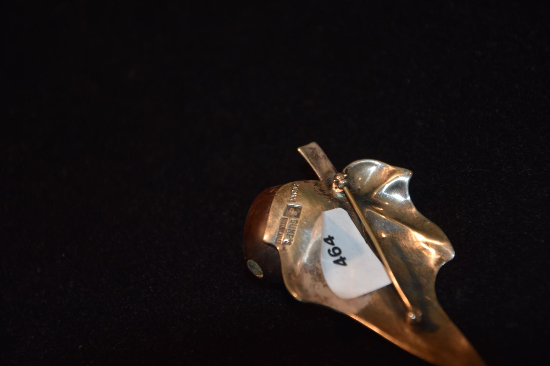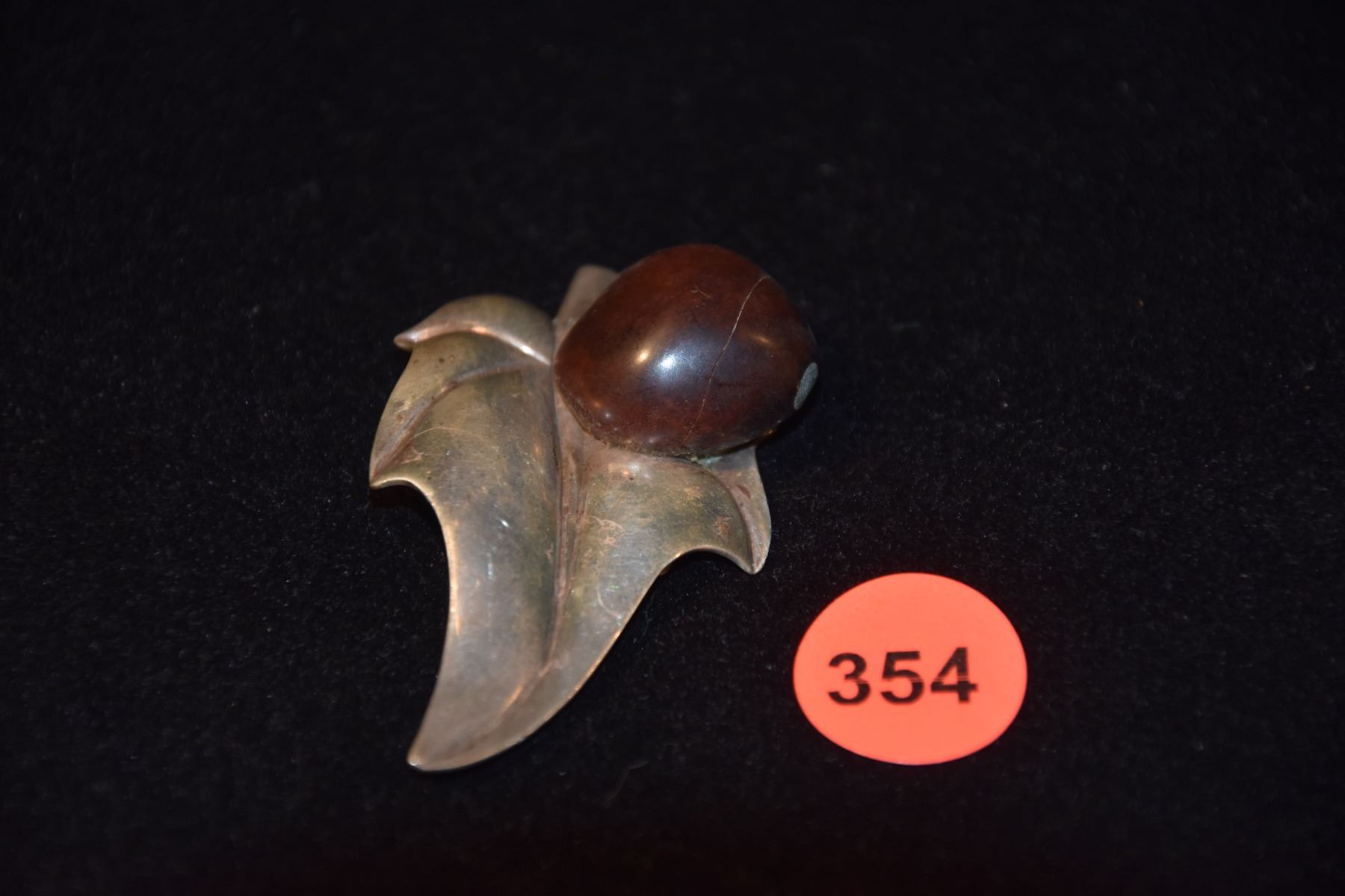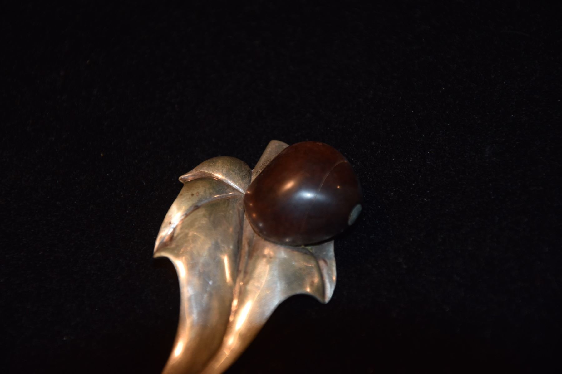 GUMPS STERLING SILVER POLISHED KUKUI NUT BROOCH, CA. 1947