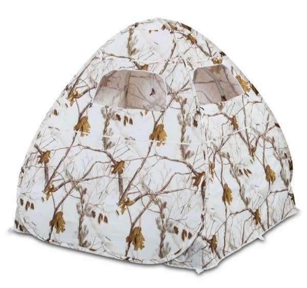 Realtree Snow. Ideal for predator hunting with firearms. Features a quick set spring steel blind w/ Dura shell heavy duty, non-reflective fabric.
