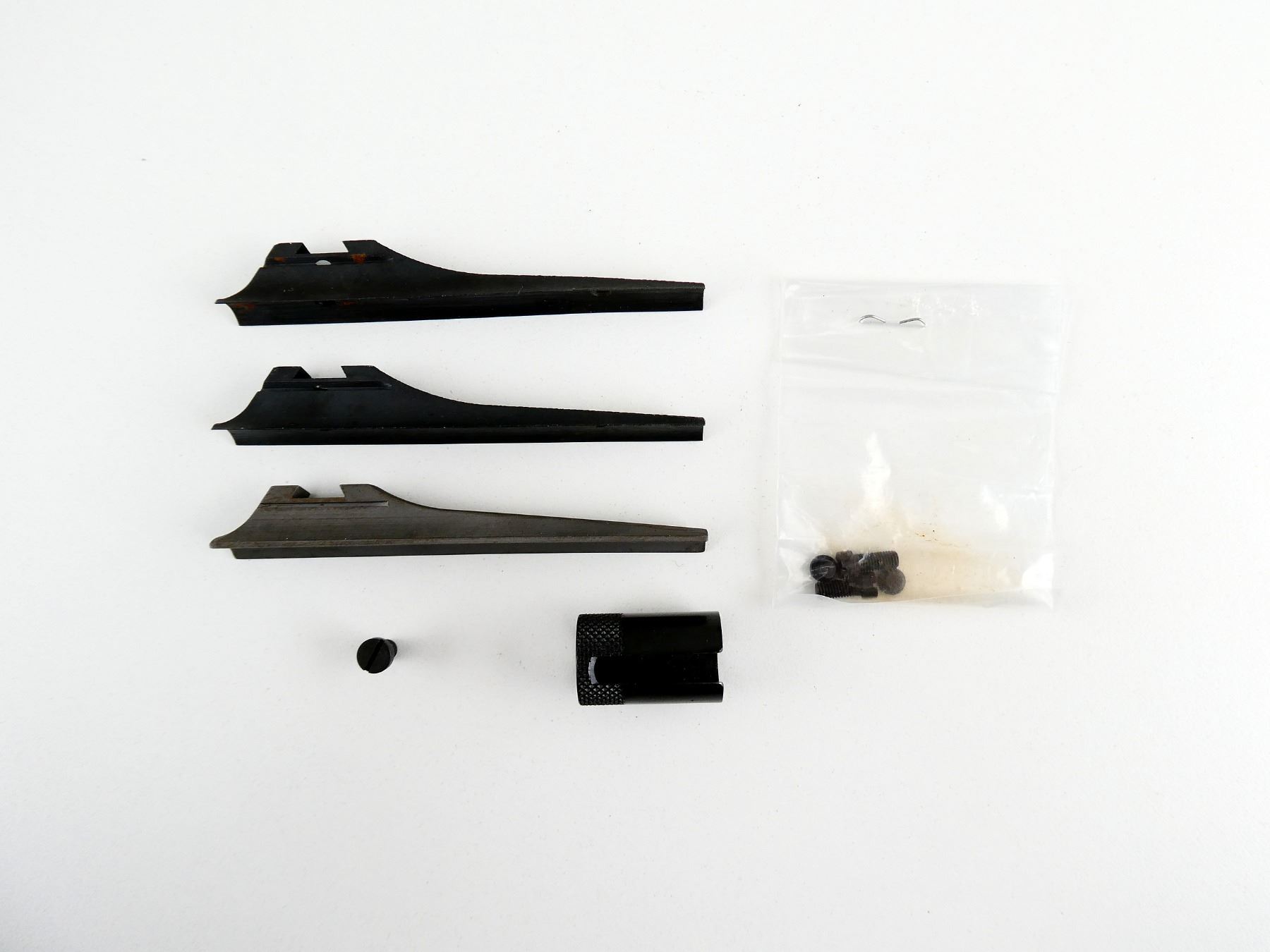 LOT INCLUDES; (3) VARIOUS RAMPS, (1) FRONT SIGHT HOOD, ASSORTED SCREWS, ETC. MAY REQUIRE FITTING. SEE PHOTOS.