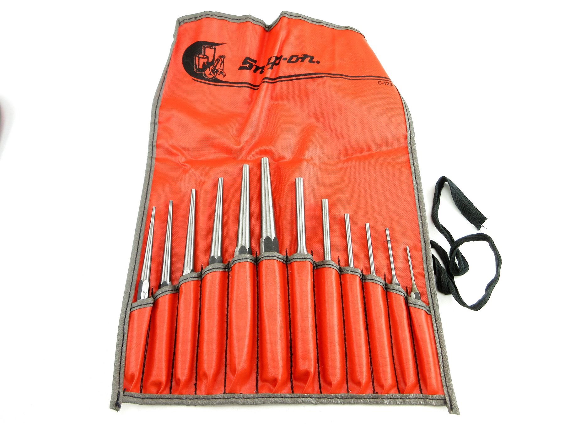 LOT INCLUDES; (1) "SNAP-ON TOOLS C-123" PUNCH SET, (1) "SNAP-ON TOOLS PPR712K ROLL PIN" PUNCH SET & (1) WESTWARD HAMMER, PART #: 7132, 32 OZ.'S, HICKORY HANDLE. SEE PHOTOS.