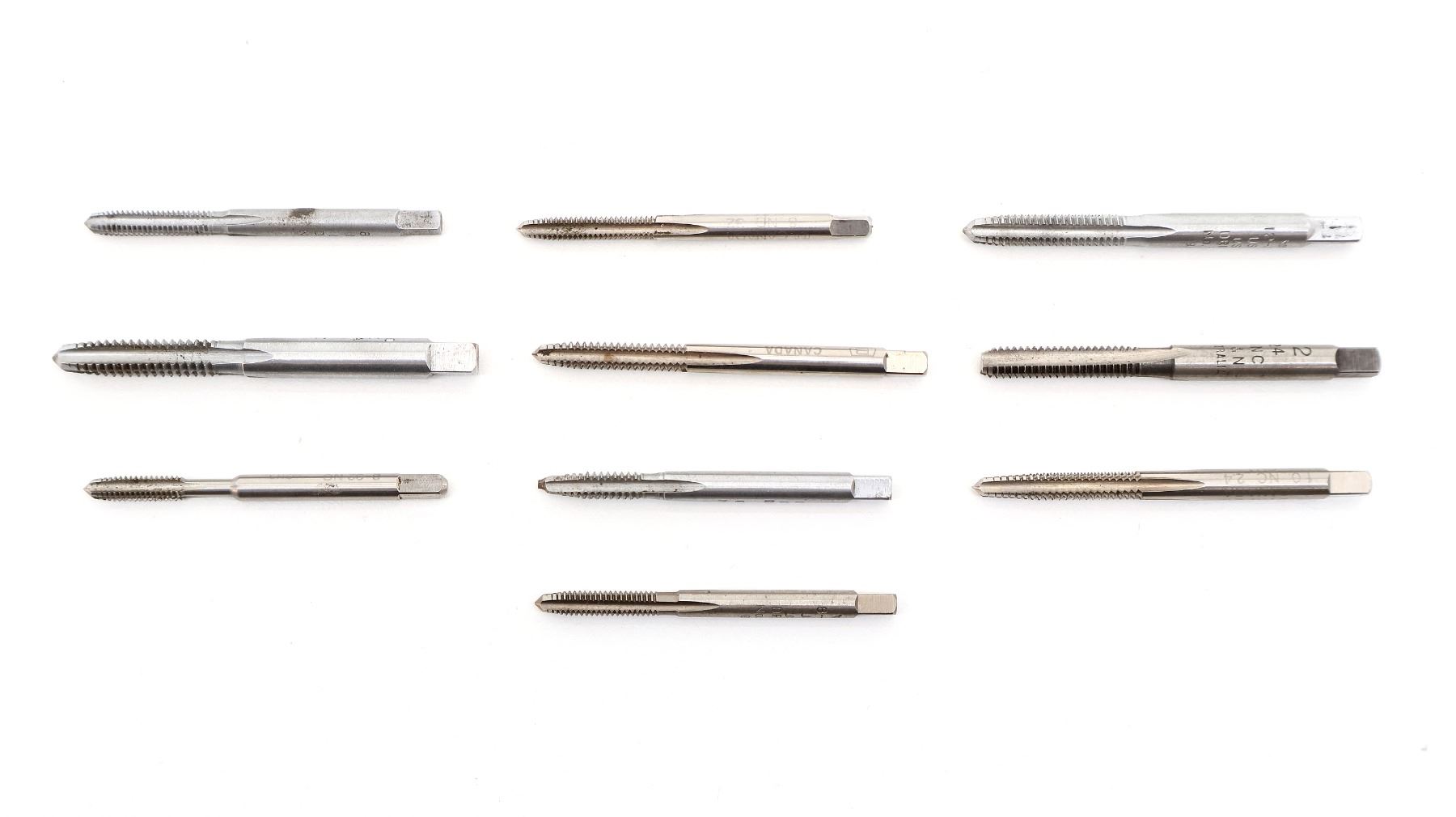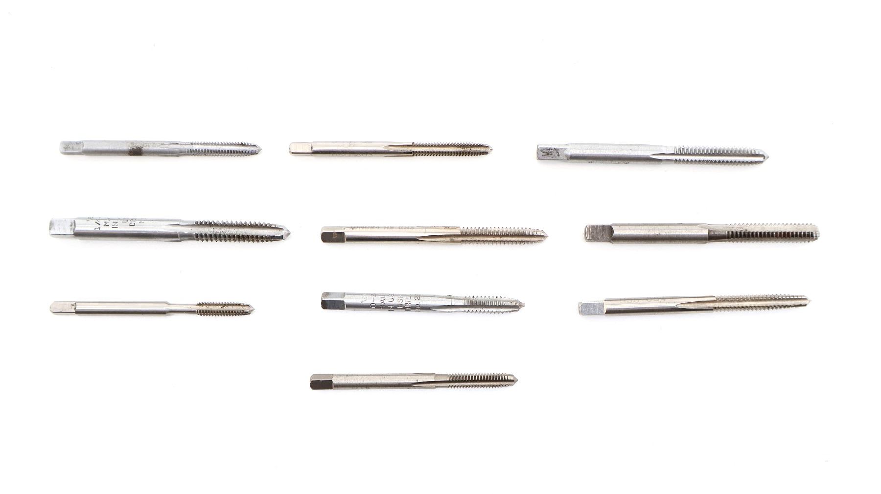 LOT INCLUDES; (10) GUNSMITHING TAPS, INCLUDES; NO. 7 1/4-20, NO. 16 12-24, NO. 25 10-24 & NO. 29 8-32, ETC. SEE PHOTOS.