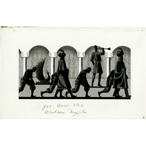<B>GUSTAF ADOLF TENGGREN (American 1896-1970)</B></I><BR>Original Illustration<BR><BR>Gouache on paperboard<BR>Inscribed lower left: p67 B&W 3 to 2 Arabian Nights<BR><BR>1 <BR><BR><B>Condition Report:</B> Pin holes in corners, otherwise in excellent condition