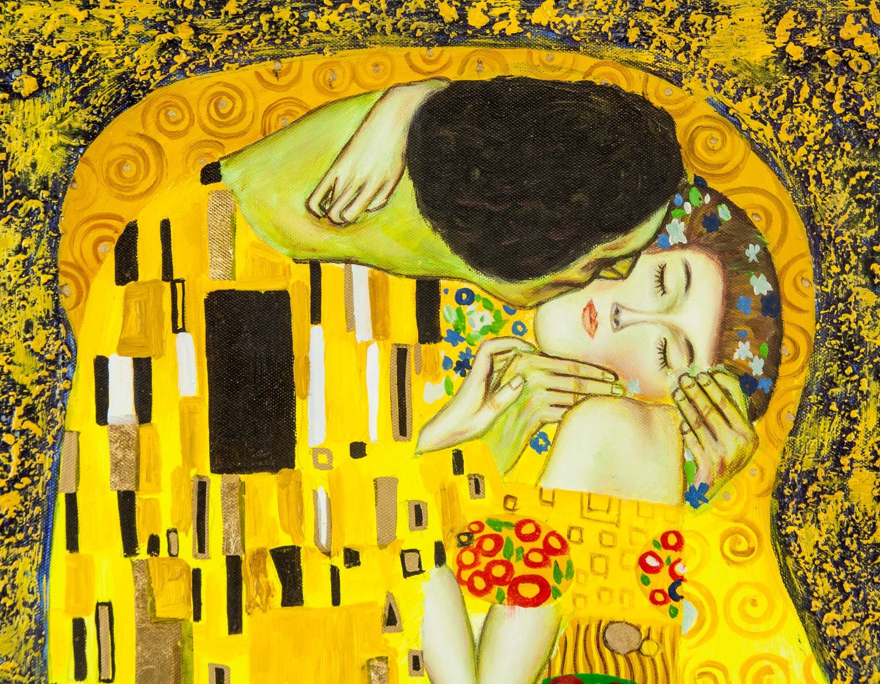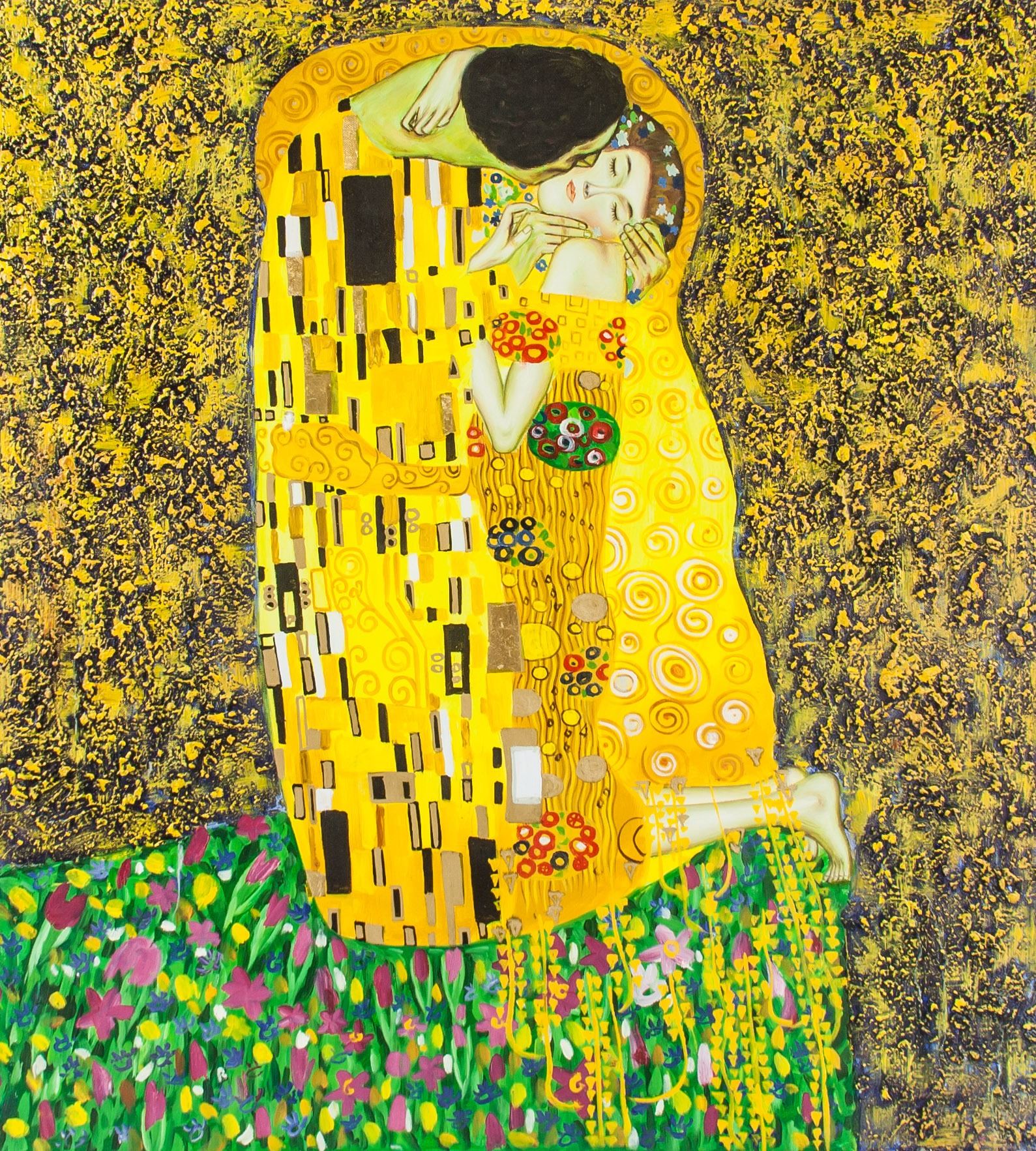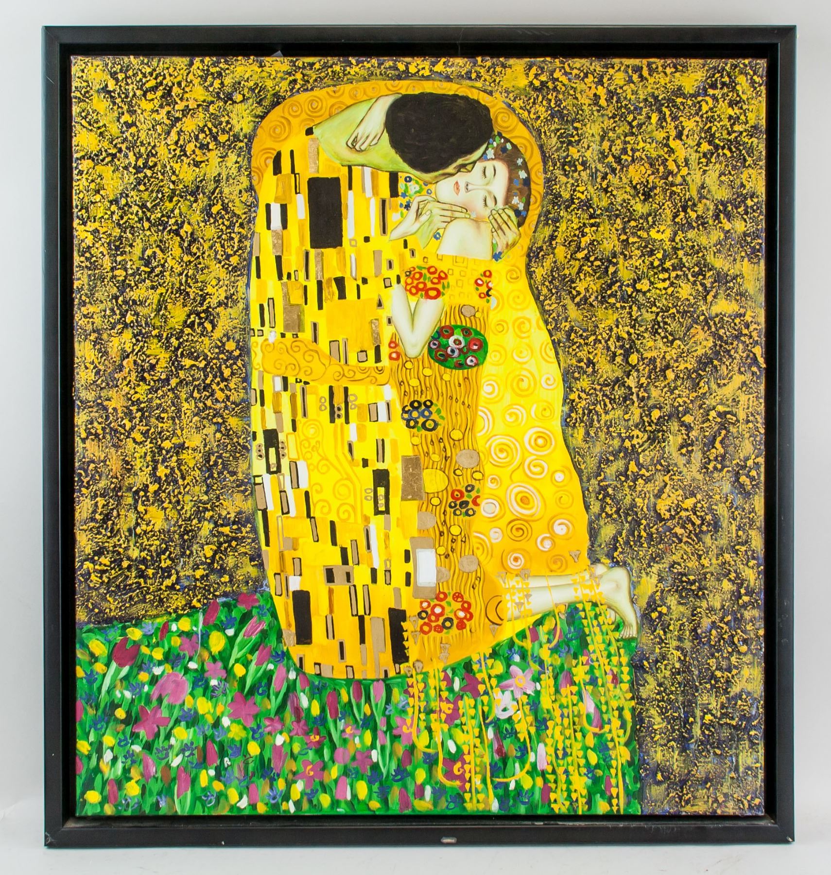 Oil on canvas painting with gold lead. (Attr.) Gustav Klimt (Austrian, 1862-1918) but unsigned. 67.5 x 62 cm (26.6 x 24.4 in). Gustav Klimt is best known for his opulently gilded art nouveau portraits of women that epitomize fin-de-siecle Vienna. His Symbolist pastiches of pale nudes, allegorical gardens and erotic content served as the basis for many American psychedelic poster designs in the 1960s. Early in his career, Klimt was supported generously by the Viennese community, and received several commissions for murals in theaters and the Museum Kunsthistorisches. Early narrative paintings depicted heavy subjects such as anxiety, doubt, sexuality, and death, but in later years, he turned toward landscape painting, exploring light and abstract patterns of nature. His most famous paintings are The Kiss (1907) and Portrait of Adele Bloch-Bauer (1907), which sold for a record auction price of more than 100 million dollars in 2006.