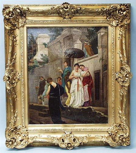 GUSTAVE-CLARENCE-RODOLPHE BOULANGER (1824-1888) French school. "Pompei Street Scene with Figures". Oil on canvas. Signed lower left. 23 1/2" x 19 1/2". In gilt frame mounted with plaque. Reference: Benezit, volume 2, page 60.