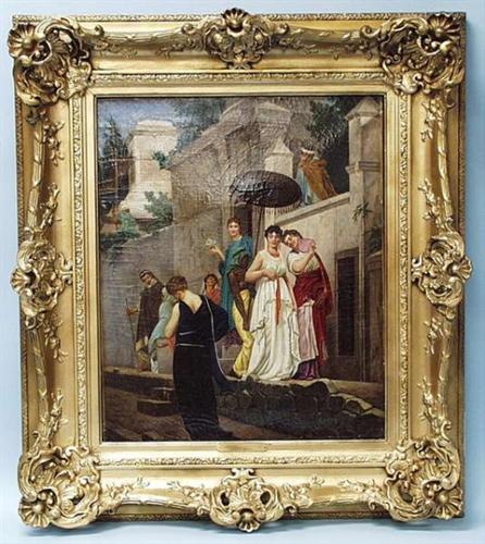 GUSTAVE-CLARENCE-RODOLPHE BOULANGER (1824-1888) French school. "Pompei Street Scene with Figures". Oil on canvas. Signed lower left. 23 1/2" x 19 1/2". In gilt frame mounted with plaque. Reference: Benezit, volume 2, page 60. 7000-8000