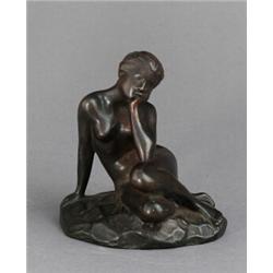 GUSTEN LINDBERG 1852-1932 Sittande flicka Signed and dated Gust Lindberg 1918. Bronze, dark patina 12 cm. Foundry Otto Meyers eftr.