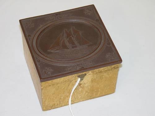 GUTTA PERCHA MAN'S COLLAR BOX W/ AMERICAN CLIPPER SHIP DECORATION - IMPERFECTIONS & WEAR;
