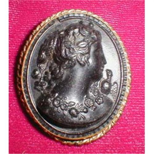 <tr><td>Title:GUTTA Percha CAMEO Brooch GF Frame ANTIQUE</td></tr>