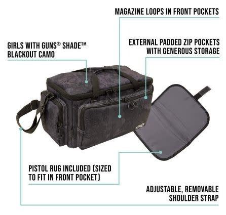 No matter how you choose to shoot, Girls with Guns has something for you. From outerwear designed to survive any element, range gear that is comfortable, both on and off the range, and logo apparel for all occasions, the cases and shooting accessories are designed by women, for women. Created for any adventure that comes your way, live life to the fullest and inspire those out in the field and on the range. The Girls with Guns Midnight Range Bag features a stylish, padded range bag with zippered pockets and an adjustable/removeable shoulder strap. Generous pocket storage to organize your gear, with accessible magazine loops, and includes a front pocketed handgun rug. Exclusive new camo pattern designed by women for women.