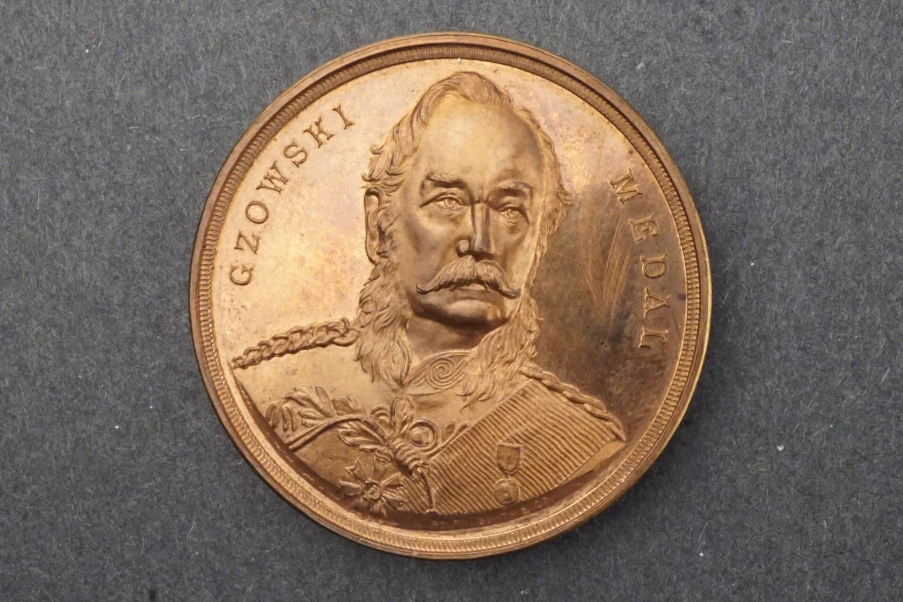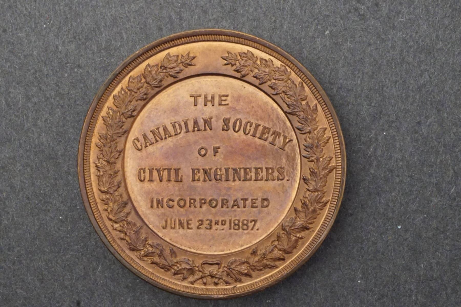 47 mm, 57.1 grams. Obverse: GZOWSKI MEDAL Facing bust. Below "Rolph, Smith & Co.". Reverse: Wreath. In inner circle: The / CANADIAN SOCIETY / of / CIVILL ENGINEERS / Incorporated / June 23rd, 1887. Red copper, possibly cleaned.
