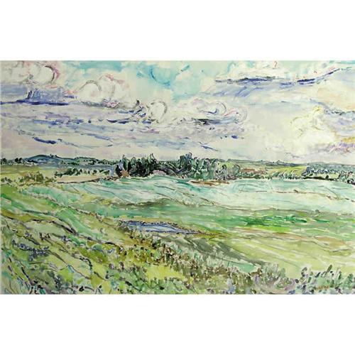 Canadian [b. 1945] SUMMER LANDSCAPE; 1980 acrylic on paper 44 x 65.75 in. (111.8 x 167 cm) signed & dated