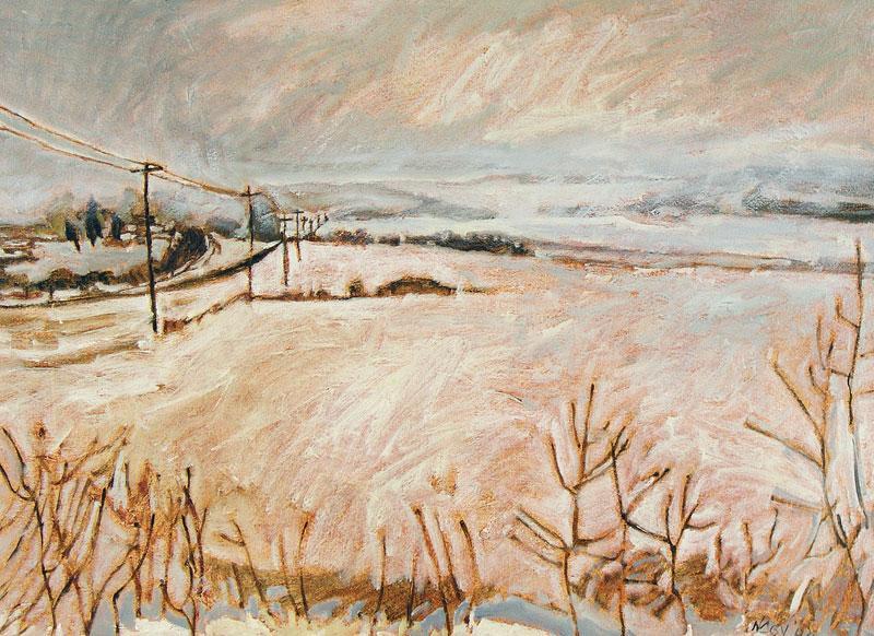 Canadian [b. 1945] ROAD TO PAINTER'S COUNTRY; 1983 oil on board 21.25 x 29 in. (54 x 73.7 cm) signed, titled & dated