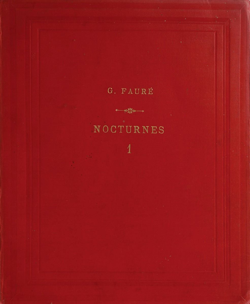 Influential French composer (1845–1924). Sheet music booklet for his seventh ‘Nocturne’ published in Paris by J. Hamelle, fourteen pages, 10.75 x 13.25, signed and inscribed on the first page in ink, “A Mademoiselle Juliette d’Eichthal, avec mille amities, Gabreil Faure.” Custom-bound in stiff red cloth. In fine condition. The recipient was the daughter of Faure’s friend, the poet and sociologist Eugene d’Eichthal, to whom Faure had dedicated his sixth ‘Nocturne’ piece.