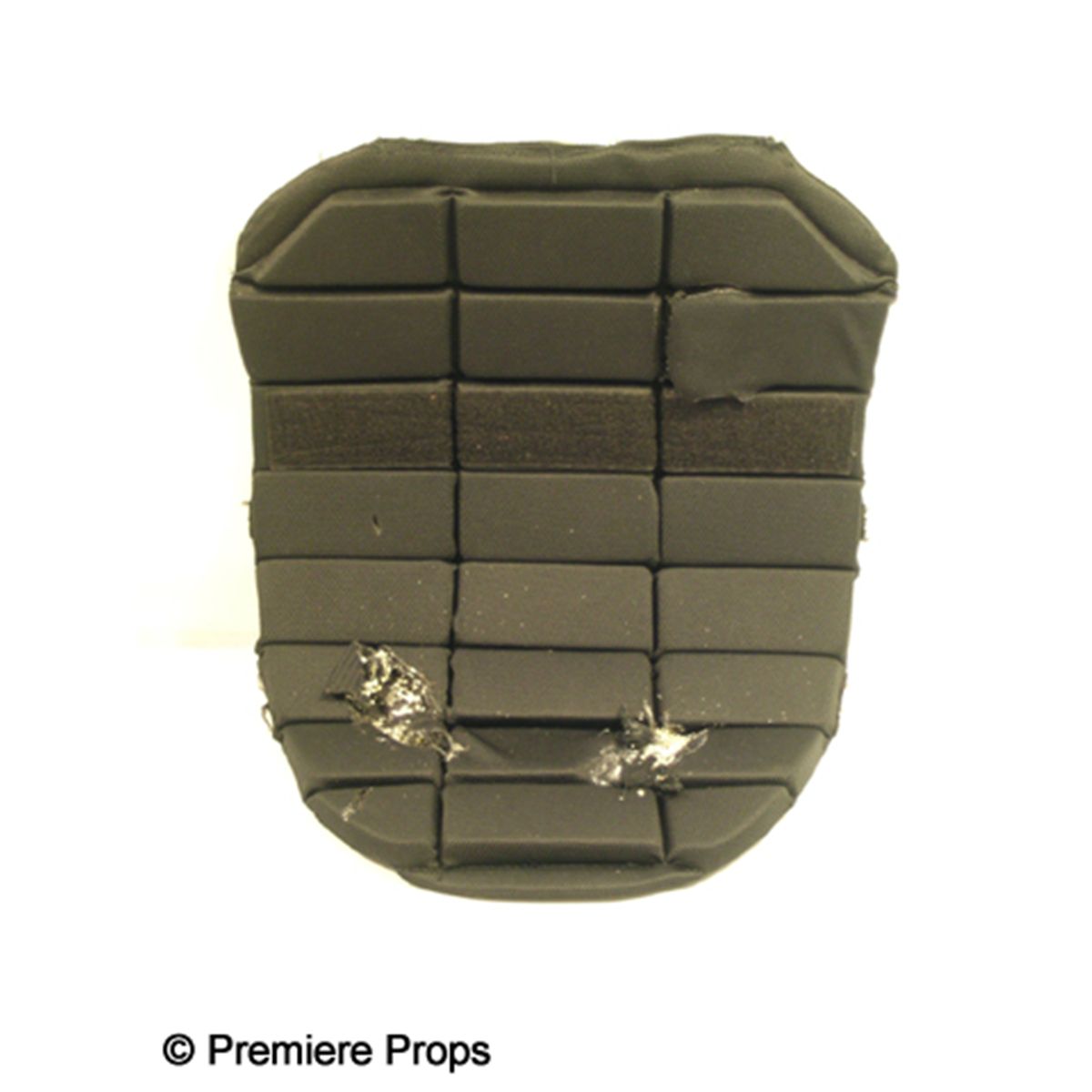Black bullet proof vest used by Gabriel Macht as The Spirit (2008). Includes surface abrasions where bullets were supposed to have been fired into the vest.