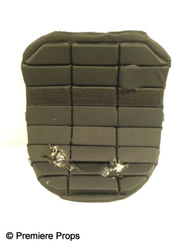 Black bullet proof vest used by Gabriel Macht as The Spirit (2008). Includes surface abrasions where bullets were supposed to have been fired into the vest.
