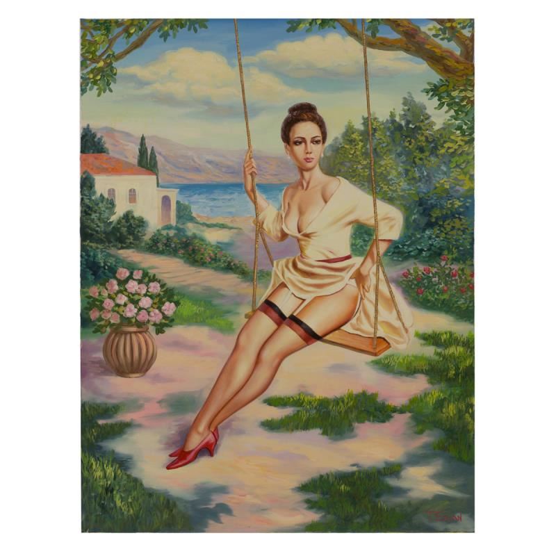 "Gabriele" is a limited edition giclee on canvas by Taras Sidan. Numbered and hand signed, this piece is accompanied by a letter of authenticity. Measures approximately 40" x 30".