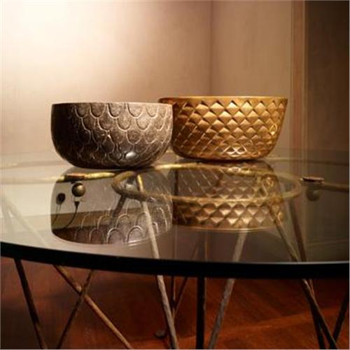 Gabriella Crespi<BR>bowls, set of three<BR>Italy, c. 1970<BR>bronze, glazed ceramic, concrete<BR>16.5 w x 11.5 d x 8 h inches<BR>Dimensions provided for the largest example.<BR>Impressed signature to underside of each example: [Gabriella Crespi].<BR><BR>Condition of the item is not included in this description. Condition reports are available from Wright upon request. Wright strongly recommends that you review a condition report for each item on which you plan to bid.