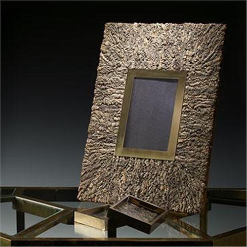 Gabriella Crespi<BR>mirror and pair of trays<BR>Italy, c. 1970<BR>cork bark, brass, glass<BR>15.25 w x 13 d x 21.75 h inches<BR>Signed with applied label to reverse of frame: [Gabriella Crespi Brev] and with impressed signature to each tray: [Gabriella Crespi].<BR><BR>Condition of the item is not included in this description. Condition reports are available from Wright upon request. Wright strongly recommends that you review a condition report for each item on which you plan to bid.