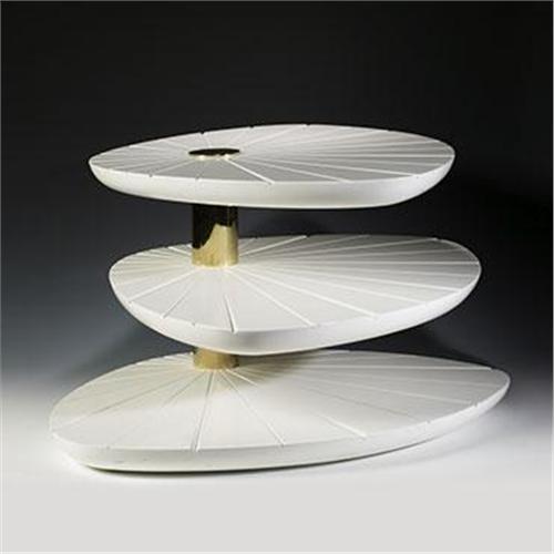 Gabriella Crespi<BR>rotating occasional table<BR>Italy, c. 1970<BR>lacquered wood, brass-plated steel<BR>29.5 w x 25 d x 15.5 h inches<BR>Signed with applied label to underside: [Gabriella Crespi Brev].<BR><BR>Condition of the item is not included in this description. Condition reports are available from Wright upon request. Wright strongly recommends that you review a condition report for each item on which you plan to bid.
